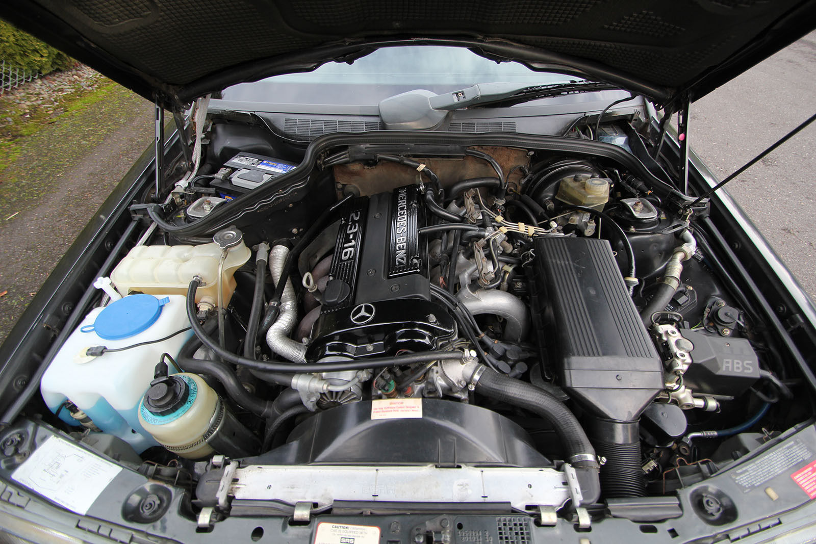 For sale is my 1986 190e 2. 3-16v. An original car. 1986 North American Model. 5-speed Getrag with dogleg. Blue-Black (blauschwarz) exterior. Black leather interior. 142k original milesClean Oregon title. 3 owner car always located in the PNW. Within the last 5. 00 miles maintenance includes:Oil change (full synthetic. Mobil 1)Full cooling system overhaul- water pump. thermostat. housing. radiator. hoses. overflow tank. full coolant flush. New front struts. strut mounts. tie rods. and bushings. Stromung down pipe to 3" Magnaflow catalytic converter and mufflers. Exhaust is hidden well with dual outlets. Deep tone. Brand new clutch with under 100 miles on it. New air filterDelrin shifter bushings. New crack-free dash. Many more with receipts. I have owner this car for almost 4 years and daily drove it for over 3 years of my ownership. I purchased this car from the second owner in Mercer Island. Washington. The car was in decent shape and I have spent a lot of time and money bringing it back to it's original glory using Mercedes parts where possible. The car is lowered in the front with 300e springs and the rear has functioning self-leveling suspension that has been adjusted. Original front springs will be included with the sale along with a box of 190e goodies. The tires have a little more than 50% tread left and the brakes are in good condition. I currently have 25mm H&R rear spacers installed in the rear and 5mm H&R spacers in the front installed. There are scratches. scuffs. and small dents around the car. it is the original paint and the car is 28 years old and was daily driven for many years of it's existence. The paint suffers some rock chips on the nose and clear coat issues on the trunk. A corner of the front bumper is missing from what I believe to be a bumper misalignment (as shown in pictures). I have the tow hook for the bumper but I forgot to install it for the photos. The car sports euro-spec headlights and a euro center gauge console. The interior is nearly flawless with working gauges. rip-free leather seats and a crack free dash. One of the rear door cards is missing a trim piece around the door pull. I have not found any rust or body repairs on the car. The car drives straight and pulls hard. It has never been smoked in. The heater blows hot (new tumbler installed) and the A/C is mediocre. The car does not leak at all. Some issues to address:The sunroof won't open but the motor works. I think the wire broke. The rear passenger door won't open from the outside. The radio turns on and does not amplify sound and the antenna does not extend. The central locking system does work but the vacuum hose between the pump and the trunk is missing. (replacement ordered. ) Needs engine mounts. (replacements ordered). Some rear bushings could be replaced. Cruise control stock is broken. (replacement ordered)Car sold as-is. Will update when or if issues are addressed.
