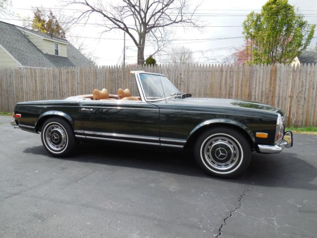 1971 MERCEDES BENZ 280 SL 2nd OWNER, 52,900 ORIG. Miles Moss Dark Green MB # 291. Interior is TAN MB Cognac Leather. Refinished about 12 years ago in ORIG. Glasurit paint, all trim removed, completed by MB body shop. NEW replaced parts in recent years MB OEM PARTS, Brake pads, all, master cyl. all rubber hoses. SYN brake fluid. MB AC compressor, conv. to 134 Freon. complete rear axel seals (inner & outer) New Michlein Tires. all filters. Leather seats & rugs. Original Radio and all controls in working order. Original spare tire, tool kit, jac, top handles, green soft top, and all the original books. I have owned this car for many years, It drives perfect, the only thing that it needs to be 100% is a new soft top. (original back window is fine but the Canvass shows age and some wear spots. Hard top is EXC. Orig. wood trim. Trans. has been flushed & filter replaced. Stored in a heated garage for most of its life. Drives & rides tight as a drum. Just a beautiful all around car. Used only on nice weekends. E mail with any Questions. Welcome to come see it. Reserve is reasonable. PRIVATE SELLER.18 miles from Philadelphia. Pa. MILES are 100% ORIGINAL !!!!On Jan-06-17 at 16:57:11 PST, seller added the following information: Soft top assembly is out of car. I was going to replace canvass, but TAN, or GREEN was not available at the time. I wanted TAN to match the interior. Mercedes dealer said that TAN would have been an option when ordered. Shop doing the top wanted FRAME separate to disassemble. Did not reinstall. Top is not DISASEMBLED. Car cover also goes with car. Bank transfer is also accepted for balance.