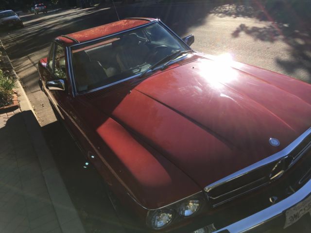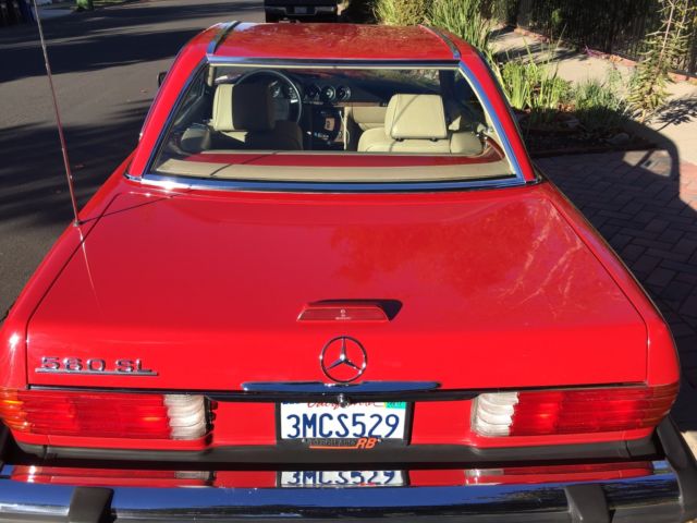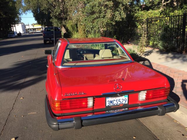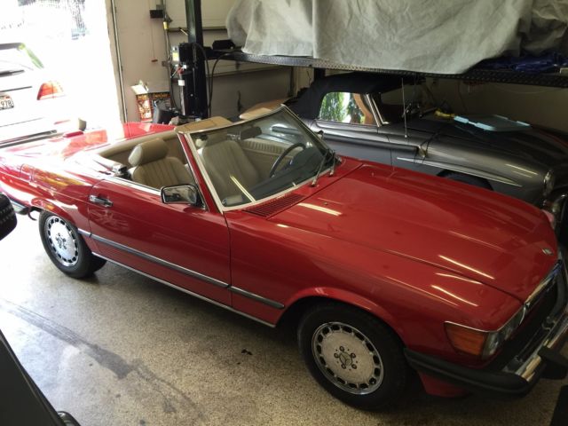 | This1989 Mercedes-Benz 560SL Convertible has Soft & Hardtop a Gorgeous Red exterior with TAN interior. Beautiful trim shines almost like new. LOW 107k miles. Wheels and finish on this vehicle are exceptional, sure to please the most discerning buyer. A true classic and exceptional example of German engineering. Call or email. New upper control arm. New sub frame bushing, new vacuum lines, new timing chain, new AC compressor, expansion valve, dryer. Clear Carfax report. |