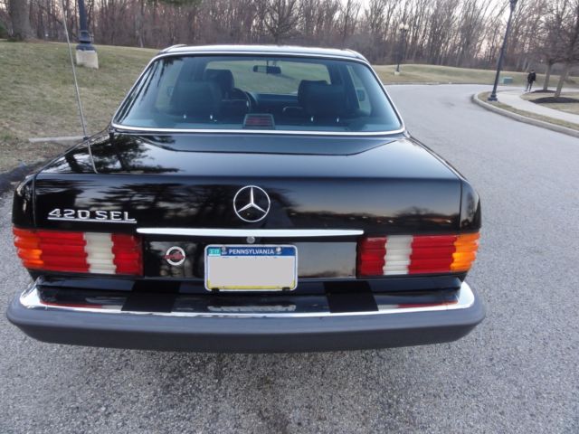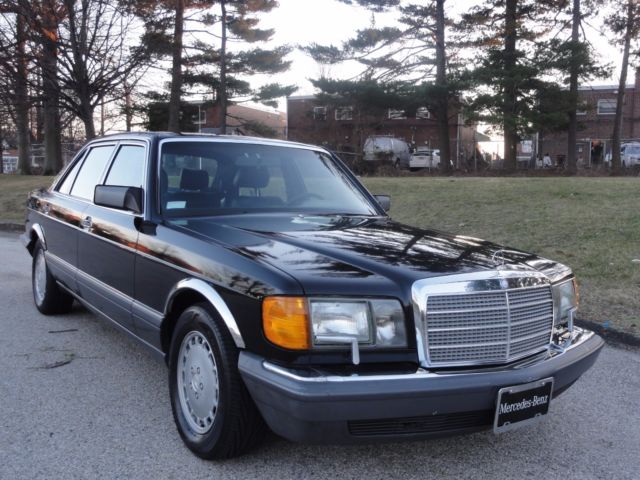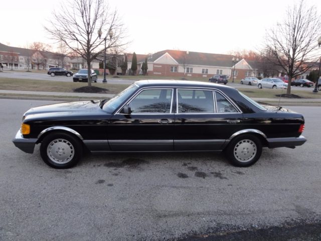 1991 Mercedes Benz 420 SEL, in excellent condition and no rust. Very low mileage at 88220. Clean black leather interior, no rips on the seats, power roof, power windows, full power, everything works excellent. There are some spots on the hood, roof and trunk which are caused by tree saps. All original manuals and tools are present. It has never been smoked in either.This comes with a perfectly clean Carfax report which is available upon request. Fresh oil change, good tires, good brakes. We can assist with shipping.