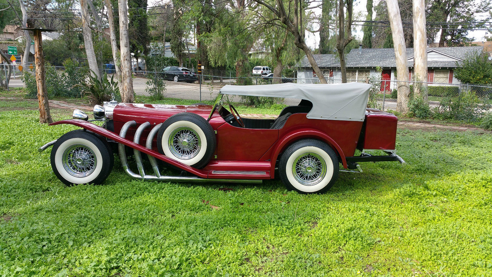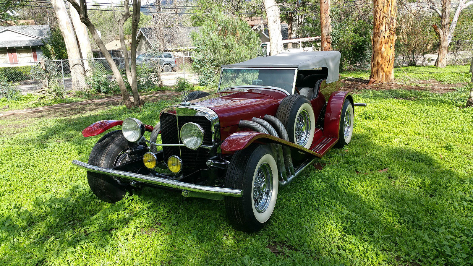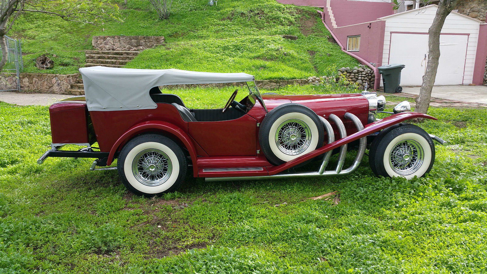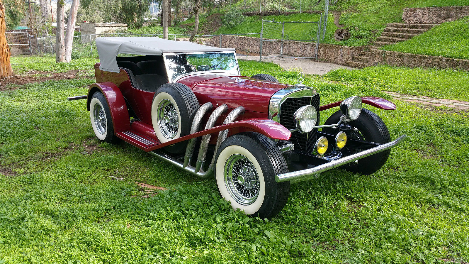 | This unique vehicle was professionally built in So. Cal. It was designed after a thirty's Mercedes Phaeton similar to the Excalibur. However. the entire body is steel. It is comprised of a stretched late 50s Corvette chassis with many of the suspension parts chrome plated. The engine is a Chevy 327 V-8 with a Holly carburetor and the trans is a 400 turbo hydro automatic. Power brakes are also featured. The vehicle was built in the eighties for the show and cruise scene but has only 20 miles on it since new. It has been stored for 25 years. It runs great and all of the gauges work as designed. Due to it's age. the wire wheels are showing some pitting and the tires. although they look new. should be replaced for safety. Also included with the purchase is a pair of spare mounted mirrors and a set of bare side curtain frames. I reserve the right to cancel this listing at any time because the vehicle is for sale locally. |