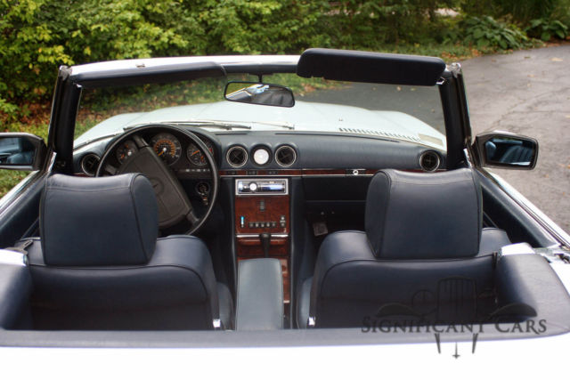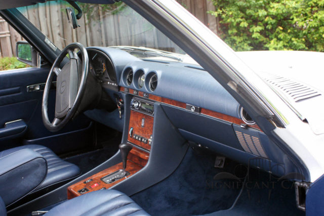 View our eBay StoreSign up for our Newsletter 1988 Mercedes-Benz 560 SL Offered as a reserve auction. This 2 owner car features the desirable European headlights and is just what one should look for when they go to buy a tank roadster- a car that has been pampered and babied its entire life, used on sunny summer days only, and always kept garaged. The seats show only minor wear, the car is almost completely rust free, I found only one spot-see photo, drives perfectly, and needs nothing really but a happy new owner. Finished in the desirable white over blue livery, and complete with both tops, and all books and records from new, this is a fine SL you can press into immediate service and show with confidence. We have many more photographs of this car, please click on any image to be taken to our full-size image list! For the 4th generation SL -the R107-Mercedes took the chassis components of the midsize Mercedes-Benz W114 model and mated them initially to the M116 and M117 V8 engines used in the W108, W109 and W111 series. The SL variant was a 2-seat convertible/roadster with standard soft top and optional hardtop and optional folding seats for the rear bench. The SLC (C107) derivative was a 2-door hardtop coupe with normal rear seats. The SLC is commonly referred to as an 'SL coupe', and this was the first time that Mercedes-Benz had based a coupe on an SL roadster platform rather than on a saloon, replacing the former saloon-based 280/300 SE coupĂ© in Mercedes lineup. Volume production of the first R107 car, the 350 SL, started in April 1971 alongside the last of the W113 cars; the 350. Sales in North America began in 1972, and cars wore the name 350 SL, but had a larger 4.5L V8 (and were renamed 450 SL for model year 1973); the big V8 became available on other markets with the official introduction of the 450 SL/SLC on non-North American markets in March 1973. US cars sold from 1972 through 1975 used the Bosch D Jetronic fuel injection system, an early electronic engine management system. From July 1974 both SL and SLC could also be ordered with a fuel-injected 2.8L straight-6 as 280 SL and SLC. US models sold from 1976 through 1979 used the Bosch K Jetronic system, an entirely mechanical fuel injection system. All US models used the 4.5 liter engine, and were called 450 SL/SLC. The 280, 380 and 500 SLC were discontinued in 1981 with the introduction of the W126 series 380 and 500 SEC coupes.At this time, the V8 engines were re-tuned for greater efficiency, lost a few hp and consumed less fuel- this largely due to substantially higher (numerically lower) axle ratios that went from 3.27:1 to 2.47:1 for the 380 SL and from 2.72:1 to 2.27:1 for the 500 SL. From September 1985 the 280 SL was replaced by a new 300 SL, and the 380 SL by a 420 SL; the 500 SL continued and a 560 SL was introduced for certain extra-European markets, notably the USA and Japan. Also in 1985, the Bosch KE Jetronic was fitted. The KE Jetronic system varied from the earlier, all mechanical system by the introduction of a more modern engine management "computer", which controlled idle speed, fuel rate, and air/fuel mixture. The final car of the 18 years running 107 series was a 500 SL painted Signal red, built on August 4, 1989; it currently resides in the Mercedes-Benz museum in Stuttgart, Germany. The "Tank Roadster"-as it is called by collectors-is arguably the most drivable and reliable of all the SL's. Rapidly rising in value in the collector car marketplace these cars are a sure bet for increased value as the years pass. The 560 is the one to buy as all the latest features and improvements are present in the 560. Our Ebay Policies: Significant Cars is one of the largest Collector Car Brokers and Dealers in the Country. Since 2003 we have worked hard to "change the way collector cars find new homes" by providing unparralleled web presentation of the cars we are representing. Most of our cars have over 30 photographs, and these can be viewed by visiting our website (our eBay handle dot com), or by clicking on any of the photographs in the black background area of our EBay listings. We welcome your call with any questions about any of our listings at anytime at 800-837-9902 and certainly encourage your personal inspection of any of the cars we are selling-just call us and we will be happy to set up an appointment for your to see and test drive the car. We realize that eBay is a difficult venue to properly evaluate an item as complex as an automobile. You can feel secure bidding with confidence on any of our cars since we guarantee your satisfaction! Should you win the auction and come to see the car and decide you do not want it for any reason, no negative feedback will result, any deposit you may have paid will be cheerfully refunded. Description images and copy © Significant Cars, Inc. |