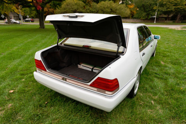 1992 S500 Immaculate. White over Palomino. All options including self closing latches on doors, power rear view mirror, self closing latch on trunk . . . . . . . . . . The vehicle has never been driven in the winter and has been kept in climate controlled storage. The car has never been through a car wash, only hand washed. I bought it with 99,000 a decade ago, and now it has 104,898 miles on it. It has been a summer Sunday driver. Living in MI does not afford me the opportunity to enjoy the vehicle as much as I'd like to which is the reason for selling the car. As a Benz aficionado you would know that all big body big engine Benz's were 500SEL's in 1992. In 1993 they became S500's. The second owner, a physician in Myrtle Beach SC, bought the 20 inch AMG wheels and low profile tires you see on the vehicle in 1996. He also had the fascia's on the front and back bumper and side fascia all pained white to match the rest of the car, and re-badged it an S-500. Since the wheels came out in 1996, and the all one color "Euro" look came out at the same time, most think its a 96 car or later. Everything works and it has been maintained for me by my local Mercedes dealer over time. With this vehicle it's not about the price, it's about the car. If your looking for an outstanding Vintage Benz that has been pampered and lived its life being well cared for, then the money is secondary to this piece of history. The vehicle has never been in an accident and also comes with a car cover.