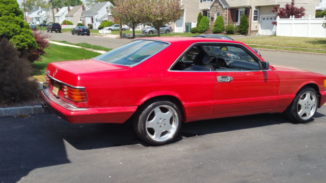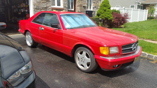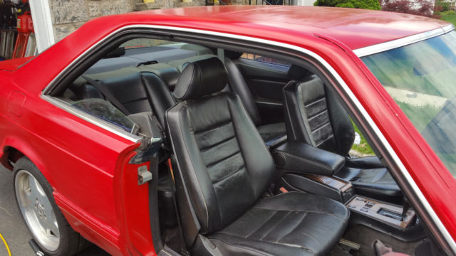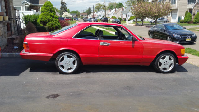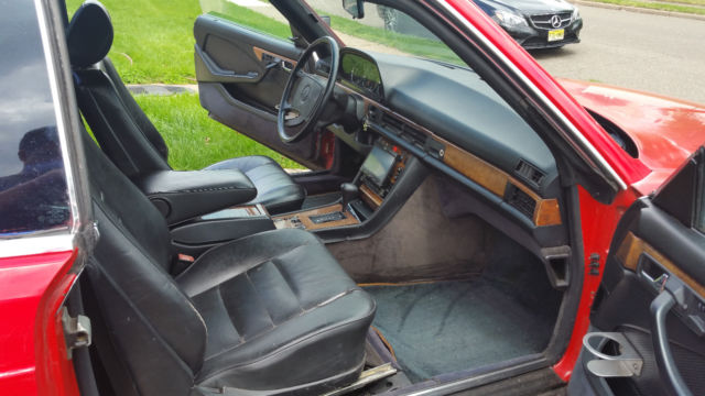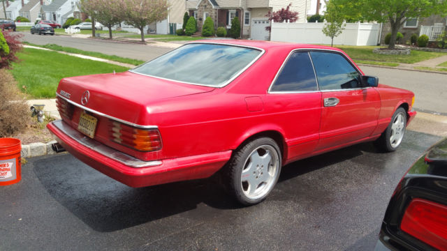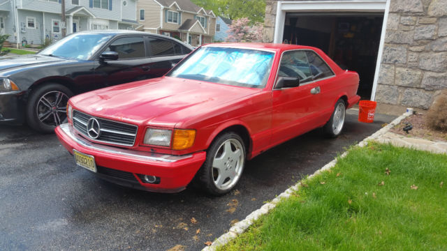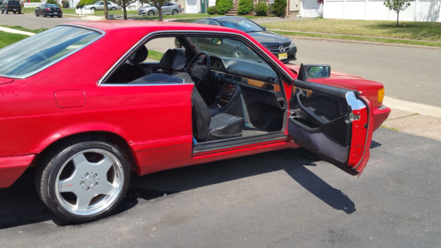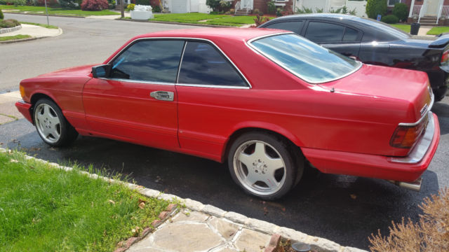 Up for a very quick Sale is my Mighty 1986 Mercedes Benz 560SEC with 112,500 miles. A very Rare Signal RED (code 568) is the exterior color which could use a respray to come to its former glory. Interior is Black. No tears on the Dash. Has a Clarion GPS Navigation/DVD/CD/iPod with a pop up 7" Display monitor. Power Antenna works as well. A/C works but the fan stopped working last week. Just to let you know. New Battery. LED in the Headlights & Fogs. Power Heated Seats with Seat Belt presenter (works). All 4 Brand New Pirelli P-Zero Nero All Season tires 225-40-18 in front and 255-35-19 at the rears on Original AMG Mono Block Rims. Two Original keys. Engine fires right up. K&N lifetime Air Filter. Transmission is strong & shifts correctly. At NO RESERVE starting at $7000.00 Go for it. This one has the Look, Stamina & Speed. Comes 'AS IS WHERE IS', without Warranty or Guaranty as expected from a 31 year Classic. Non-Refundable deposit of US$500.00 due within 48 hours after winning the auction. Buyer is responsible for shipping or pick up. Don't bid, if you cannot buy. |