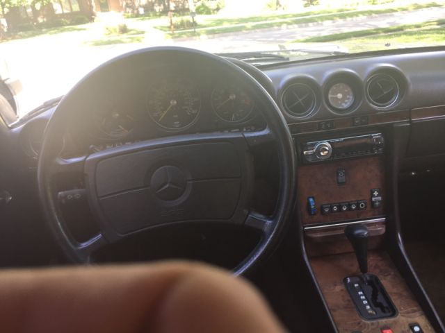 | 1986 Mercedes benz 560sl was previously owned by a friends mom who just didn't need it sitting anymore.was in storage for past 3 years. I changed the spark plugs and distributor cap and rotor. Also new plug wires. Runs great with just over 80k miles body is very nice with the exception of a few small rust areas that are at the bottom of the car . Please look at the pictures. Wipers don't work .the wiper Motor runs but sounds like they came unhooked.the hard top is easily removable with the canvas top in the proper location . The canvas top could use repair or replacement. The plastic windows in it are broken and a small tear above the driver side about 4" long. The entire top is under $350 new on eBay. Interior is decent for a 31yr old car. S drivers seat has a hole along the left bottom of the back of the seat. All in all this is a great car to keep for years to come. Drive as is or tinker as you drive and restore to perfection. Also has a Sony radio with MP, and 6x9 speakers.THIS IS A 31YR OLD CAR AND ITS NOT PERFECT!!!!!! |