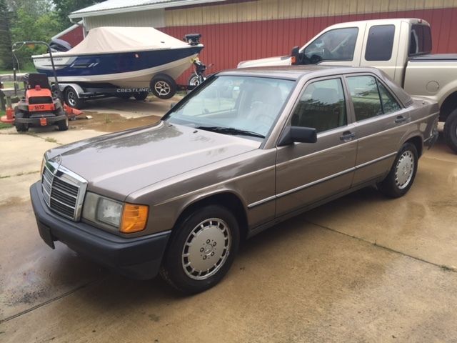 Garage-kept, 1987 Mercedez-Benz 190D diesel sedan, 109,239 miles. Purchased back in 2008 by my grandfather as a recreational vehicle. He passed away in 2009 and it has sat in the same garage for the last 8 years. As you can see the exterior and interior are in great shape. There was a plastic fitting on the motor that cracked and the antifreeze / coolant leaked out. I believe there are a couple of missing fuses as well. I don't have the time or the knowledge to get this car running but I believe that someone who is familiar with these vehicles could invest a little time and get a great car out of the deal. I'll do my best to answer any questions that you may have. Happy bidding.