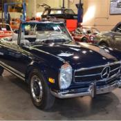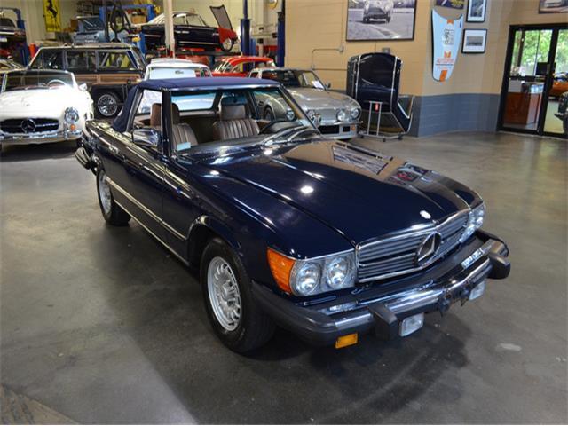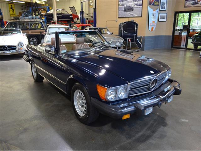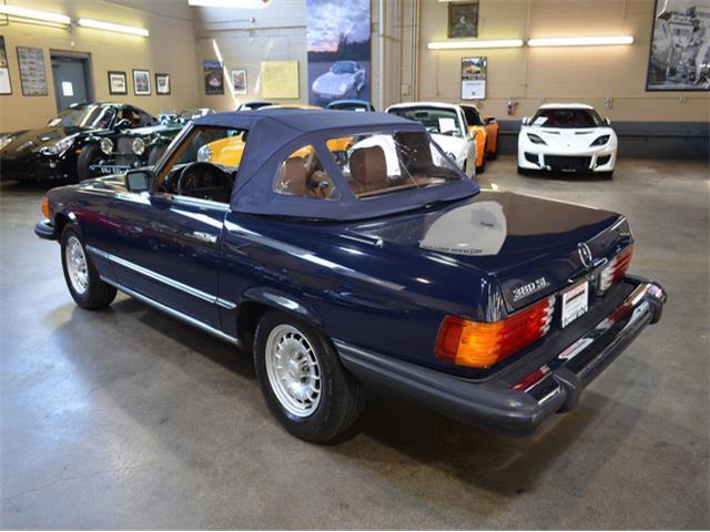 | 1983 MERCEDES BENZ 380 SL ROADSTER --Midnight Blue with Palomino Tan leather interior, Tan carpeting and Blue cloth convertible top, 60,000 miles from new, Four-speed Automatic, Factory Midnight Blue hard top. |