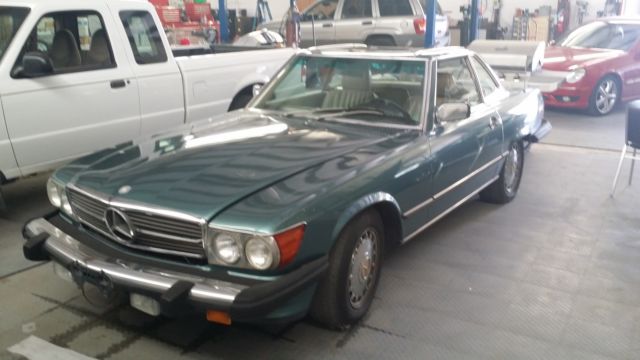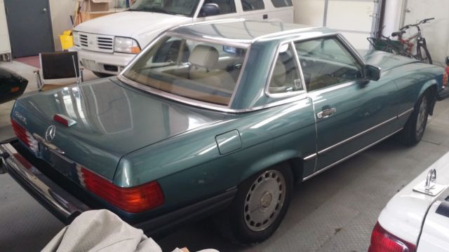 | This listing is for a 1989 Mercedes 560SL. This is a beautiful car with a removable hardtop. Original tan interior starts and drives great. The car has some minor cosmetic issues. Small scratches on the paint, there is a little rust on the front passenger side wheel well and the interior seats have some small cracks and stains on the floor mats and carpet. There is a small oil leak. This is not a show car but would be a great run around car or weekend car. Thanks for looking, just send an message with any questions. |