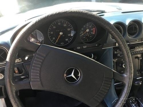 This one owner, all original Mercedes Benz Survivor, is offered for sale at $14,500 The owner bought this car off the lot in 1976 from a dealership in Southern California. Eight years ago the owner moved to Gig Harbor, Washington. There are91,373 documented original miles. According to the owner the paint, seats, bumpers, etc. are all original and in excellent shape. The owner maintained the car to the fullest extent he could. The owner's son is selling the car and represents all this information to be true and accurate. The air conditioner pump was replaced in 2000 and works, however, it needs a new belt. The owner recently had the headliner re-done on the hardtop. At the same time they also installed a brand new soft top. The original (and beautifully maintained) wheel caps are also inclused.This car is truly original and ready for a new owner to enjoy. This car comes complete with the seal of approval from Jim's Classic Garage and qualifies for "Jim's Personal Guarantee". Simply put, if a potential buyer were to travel here and walked away without buying the car because the condition of the car was anything other than how we described it on our website, we would pay for their travel expenses. We are able to assist with shipping. |