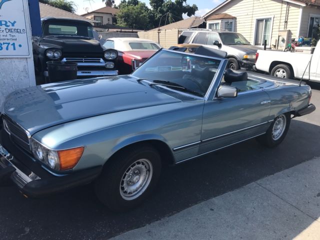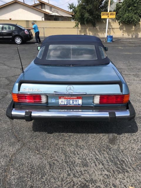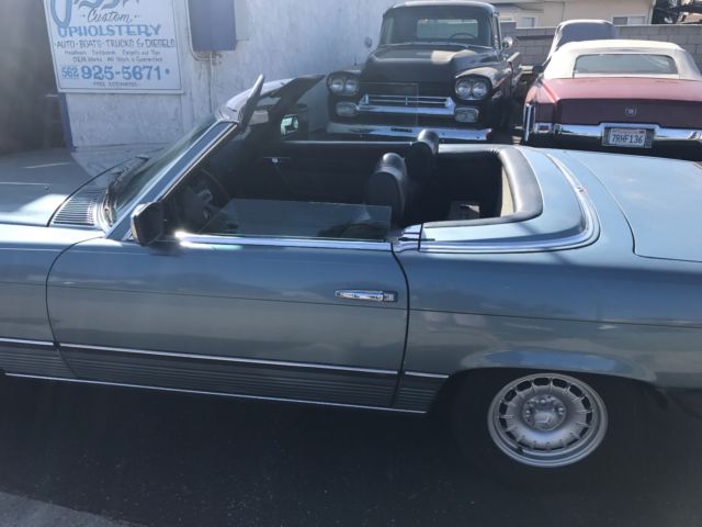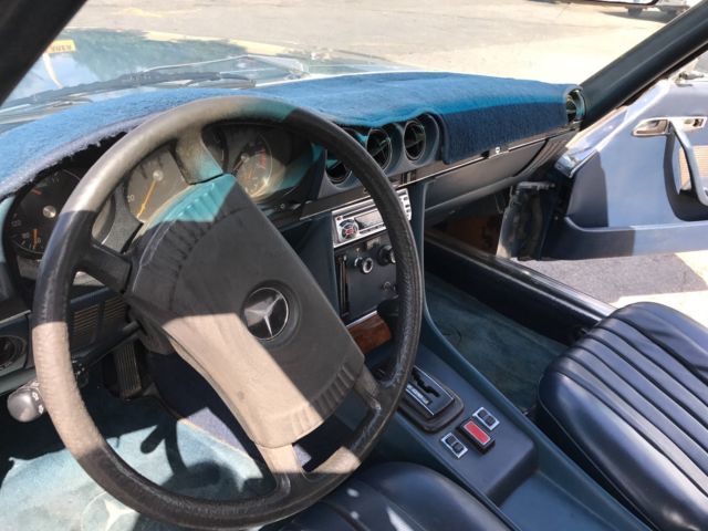 | 1976 Mercedes Benz 450 sl. Both convertible and hard tops included. Factory alloy wheels. Exterior color is light blue and dark blue factory leather seats. V8 gasoline car. Kept garaged in Southern California. There is some paint blemish on passenger right rear quarter panel and some small paint bubbling on rear trunk lid underneath the 450 sl emblem. Comes with rear black spoiler on trunk. Am fm CD player with sub woofer included. Car runs and drives excellent. Well maintained by owner. Clean California title. 231 thousand original miles. Tires i excellent condition. This is a timeless Mercedes classic design. Please see all photos. Feel free to ask questions. Buyer handles pick up of vehicle. |