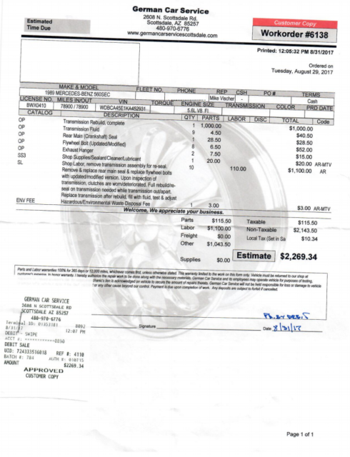 SEE MORE PICTURES BELOW DESCRIPTION - All sorted out with no mechanical issues. Can be used as a daily driver.- Over $15k invested to get it to excellent condition. Also lowered on H&R springs.- Most W126 coupes, even the high priced ones, have engine issues that need to be addressed and all have problems lurking underneath the hood that require time and $$$.- Driven on weekends only.- Tires are like new and drives like new at surface and freeway speeds.- A/C blows ice cold with no problems instantly cooling the car even in the AZ summer.- Original paint in excellent condition and shines to a high gloss- Waxed and detailed every month with clay bar paint decontamination every quarter.- I am not a dealer. Selling this one as I need to free up garage space for a new project.- Pictures of receipts for all work done are attached. SOME OF THE WORK ITEMS INCLUDE: - Cylinder Head Machine Work and Gaskets- Timing Chain/Tensioner- Intake Manifold Seals and Gaskets- Complete Transmission Rebuild- Rear Main Seal- Fuel Injectors- Water Pump Head Gasket- Valve Cover Gasket- All Belts- Tie Rod Assembly- Drag Link- Shifter Bushings- Sway Bar Links- SLS Accumalators- Steering Gearbox Rebuild- And many other items IMPORTANT: - Despite everything listed above, this is still an almost 30 year old vehicle and as such do not expect a new car. Issues do pop-up with older vehicles and that's just part of ownership with such cars.- The paint is in outstanding condition but it does have minor chips and dings all around. Nothing that is noticeable however if you were standing a few feet away.- Please do not bid if you do not intend to pay. An ebay auction is a binding sale and not an opportunity to come kick the tires once the auction has ended and you are the winning bidder. Failure to complete the transaction after a winning bid will not only result in ebay notification but also legal action.- I am happy to have the car inspected through an ebay inspection service. Thank you Photo Gallery - click to enlarge |