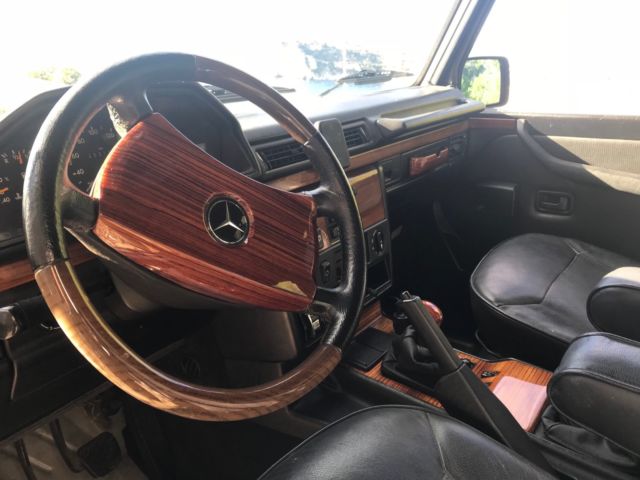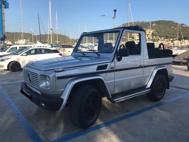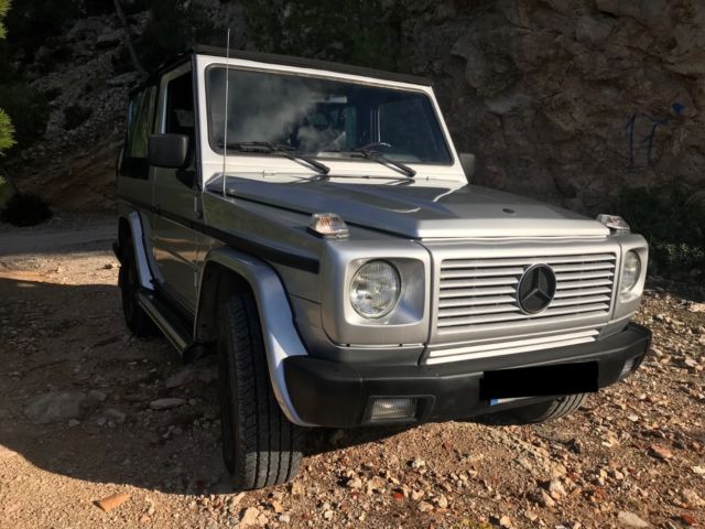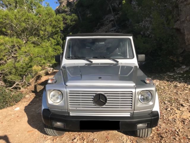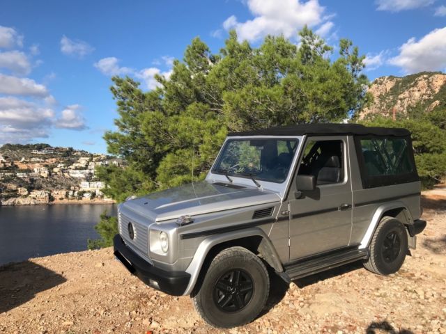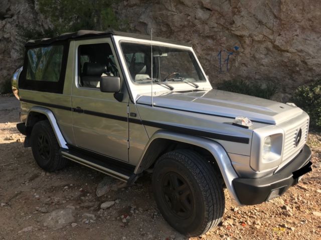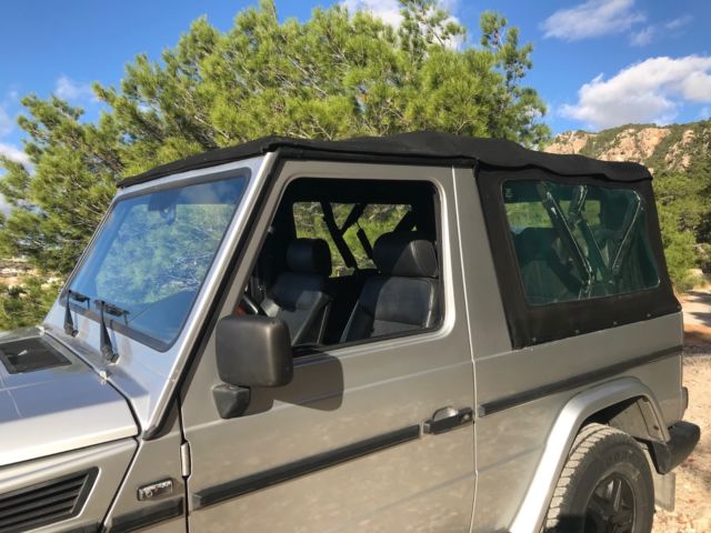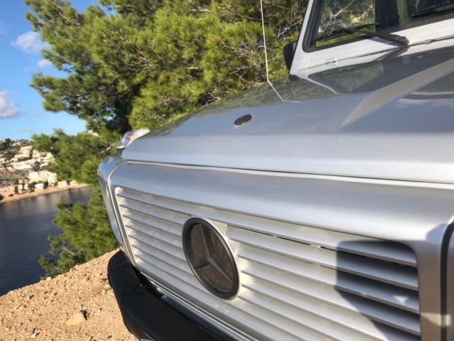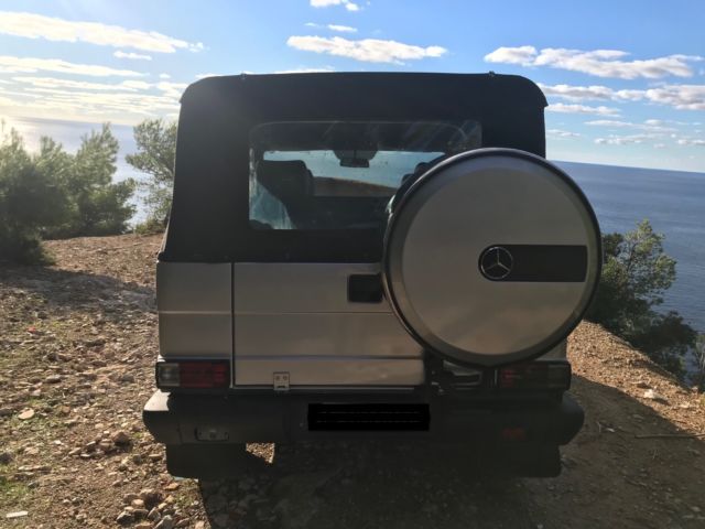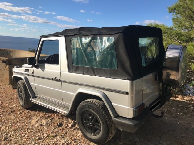 Collectable vintage Mercedes G Class Wagon convertible 3.0 Liter Diesel in silver with black Sonnenland fabric top from 1992. 200.000 km. Sporting black leather seats, all wood inside original and perfect. Original Mercedes Sidesteps, Original Mercedes rims, Electric windows, Alarm, Original Mercedes Wheel cover, new original Mercedes Battery. All in perfect vintage condition. 3.0 Liter 6 cylinder engine has been taken out and all checked and repaired. New tubes, Diesel pump restored, new Manual transmission set installed, new starter engine, new plastic windows soft top, Bluetooth radio, 6 speakers and bass woofer. A lot of parts have been replaced to make this car an excellent daily driver. Im a collector of these Vintage G Wagons myself and drive a G wagon Convertible daily from 1990 every day about a 100 km(70 miles).Car is located in Mallorca, Spain with a French title and can be shipped anywhere worldwide. I can assist with shipping and make sure that the car gets delivered at the Palma de Mallorca port for transportation. Buyer has to arrange shipping and importing the car in his or her country.The soft top is a dream and can be manually used in 5 different modes: Closed, Sahara, Targa with closed sides, Targa with open sides and all all the way open. See photo's. **This vehicle was imported from Europe and doesn't have a standard VIN, the actual VIN is WDB46330717084037.**