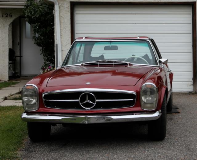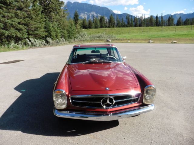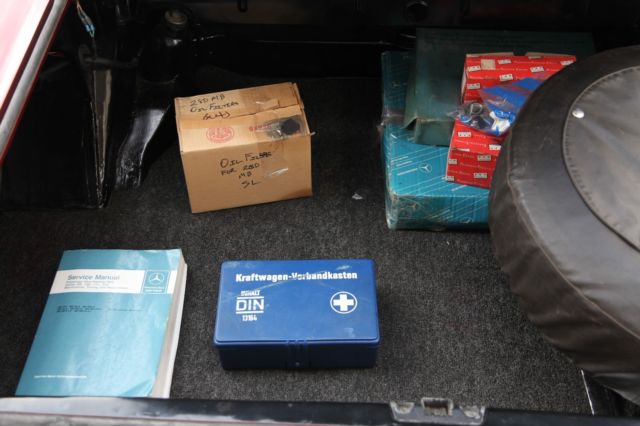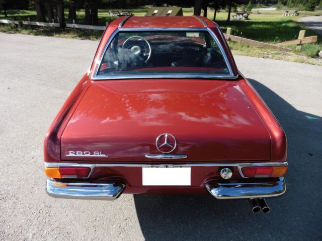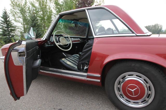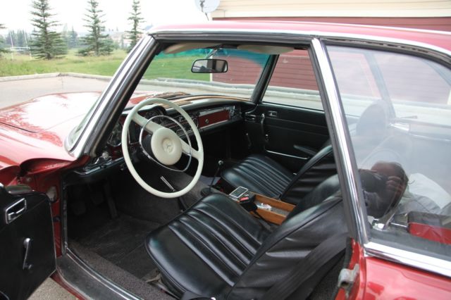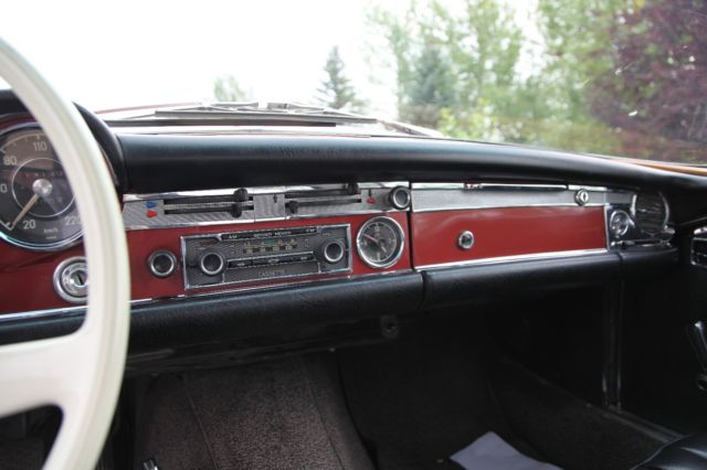 1970, 280 SL,ZF5 Speed Gearbox, German Car imported to Canada. Firemist red metallic with black interior, MB Tex seats were replaced with black German leather. Original Becker Mexico stereo, power antenna, blue tint glass with heated rear window. White NOS steering wheel. Mercedes locking gas cap. Motor was replaced in Germany, have supporting service records. Purchased from local MB dealership. Complete body was remanufactured using MB parts. For list of parts see scan of invoice. Restoration finished in 2005, car has been used rarely since then. This car has new Mercedes metal work. Included in sale: Original sales brochures, owner's manual, ZF service manual for5 speed gearbox (German language), Mercedes shop repair manual, tool kit, First Aid kit, MB Car Care kit and car cover. Many new parts including NOS steering wheel added after the refurbishment. Recent extensive service, see scan of hand written invoice. This is a 280 SL with a ZF 5 Speed Gearbox, there were very few of them produced. It is the opinion of Mercedes Canada that ZF 5 speeds were never shipped to North America, due to US pollution control standards. Study the photos carefully, the car is not perfect. Ask questions. Successful bidder will deposit 5% into the sellers's account within 48 hours. Full payment within 7 days. Buyer is responsible for shipping. I will assist where possible. Car is listed elsewhere so I reserve the right to end this listing at any time. Auto is sold in good faith. However it is used and no warranty is offered or expressed. Buyer is expected to be knowledgeable and aware of the conditions of buying collector cars. Considering the 5 speed gearbox and the quality of this SL, the reserve is very reasonable. There were only about 400 of these cars produced with 5 speed transmissions.It is unlikely you will find another ZF 5 speed SL.Contact me for more info. |