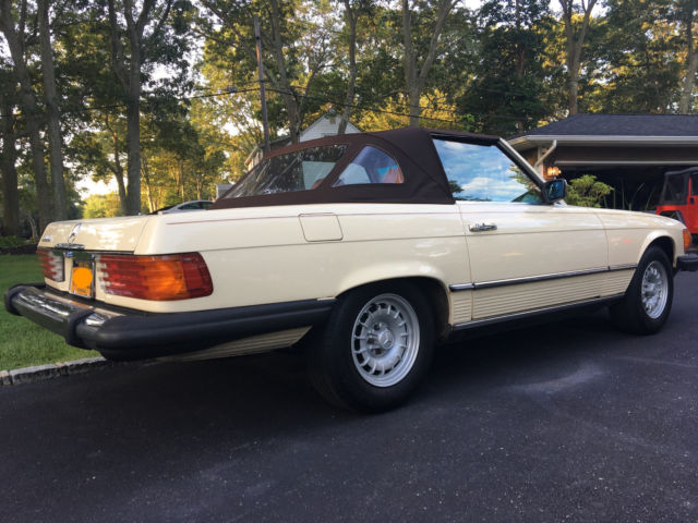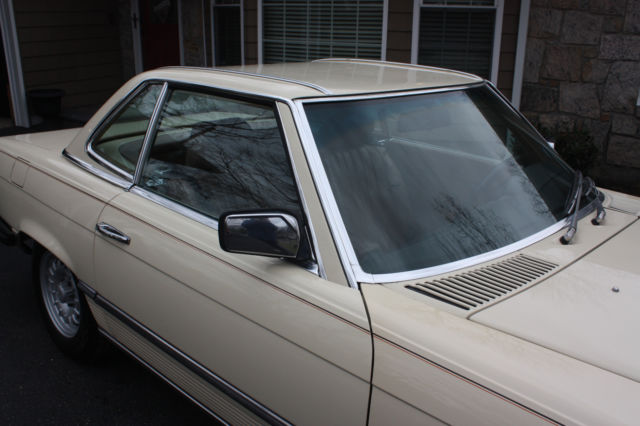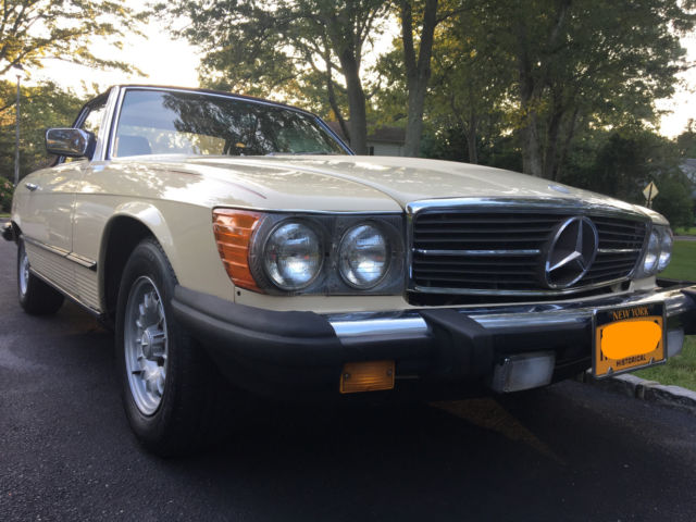Light Ivory w/ Palomino Int.; 170k, Auto, PS/PB/PW/AC/Rear Defrost; 3rd Owner; New Full Exhaust; Original Becker Grand Prix Stereo w/ Auto Antenna; New Michelin Tires w/ Original Spare; Wheels Freshly Painted; Timing Chain Done @ 147K. New Soft Top (OEM Sonnenland German Canvas/Original Color) w/ All Working Hardware; Hardtop w/ Original Glass, Clean Headliner, M-B Hardtop Cover and Dolly; "Top Down" Cover; Brown Tonneau Cover; New Full Car Cover; New OEM Mats w/ M-B Logo; All Carpets; Clean Rear Storage. All Receipts, Manuals, Keys, Original Tool Bag and Tools. Vehicle is Being Sold AS-IS with No Warranty Expressed or Implied. Sale is final. |