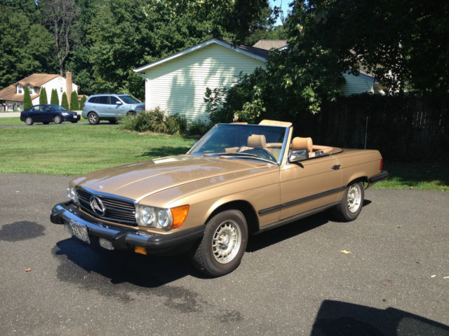 | 1984 Mercedes Benz 380SL Gold with Tan interior. This car is a two owner and originally purchased at EuroMotor Cars in Bethesda MD and purchased a second time from there as well. Car is garage kept and has had new tires. fuel pump. and exhaust put on. Car has been driven only 400 miles in the last 3 years. Great Car for a weekend trip. There is a small tear starting in the soft top as this is the second top installed on this car. Hard Top is in perfect shape and comes with a Storage Cradle with cover for keeping. On Feb-11-15 at 06:28:35 PST. seller added the following information:I am not sure why in the report it is saying it has a lien on this car it does not. This was my mothers car and I have a clear title on it. I have verified this with the MVA. I have title in hand with no lien. |