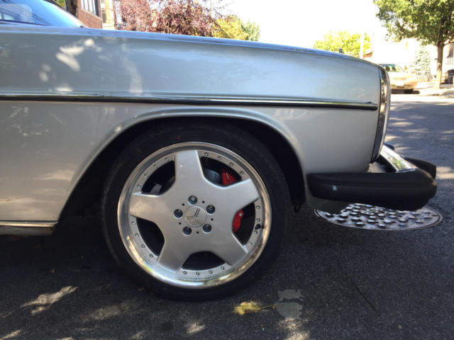 | For sale 1974 Mercedes 280C, some rust on floor panels, clean interior, A/C disconnected, manual transmission, new 18" wheels and tires, new brakes, transmission and rear end oil changed, original bumpers included, 16" set of wheels included. |