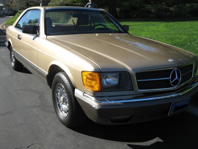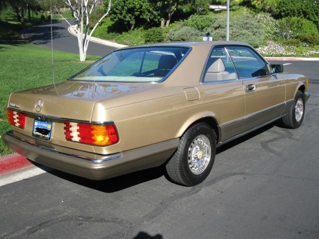 Selling for a very close friend his 1985 Mercedes Benz 500 SEC. Purchased new in Los Angeles June of 1985. have all original purchase contract. protecto plate. Window Sticker. all books-Manuals 3 original keys. every receipt of Service. repairs. battery. Tires etc. All original. always Garaged. You can see from the pictures the shiny paint. well kept interior and with all service records. this 500SEC has been kept near perfect. Above the left rear tire area on the Fender is a rust spot the size of a half dollar see the pics attached. Be assured there is no other rust. undercarriage is clean. Also. the right front bumper has a scratch and as a couple other corners. The glue that attaches the wood to the dash is coming loose. The SRS light is on but. all works properly. The A/C blows cold. engine-trans runs very strong. All windows. doors switches work as they should. All paper work will come with the car. any buyer is welcome to an inspection and or have a certified Mercedes mechanic inspect the car. Traditional Mercedes Champagne exterior and Palamino interior. This Benz runs strong and shifts perfectly. Please ask any questions. More pictures can be sent upon request. Thank you for viewing this collectable time piece.