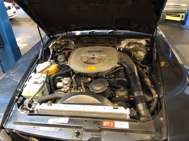 Private party selling my 1989 Mercedes Benz 560SL in Pearl Black Metallic (Dark Charcoal) with a light gray interior and the original black soft top in near new condition. Always a SouthernCalifornia car! Paint is excellent and clear coat is present and glossy. Hard top comes with the car and is in very good condition as is headliner. The car is in really fabulous cosmetic condition with only one significant dent at the driver's fender outer rim (see photos). There is also a paint scrape about 1.5" at the drivers fender edge (see photo). Otherwise a few typical small scratches that are not very noticeable. The interior is almost like new. Dash is superb and only very slight wear on the outer bolsters of the driver's seat. The original stereo has been replaced and the new unit works well. Original head unit not available. Antenna raises and lowers as it should. All instrumentation works as it should. Car runs and drives well. Brand new Michelin Premiere tires ($600). All VIN tags are present. Mostly original paint. I believe the passenger door and fender have been repainted but at a very high level. AC is not cold. Center vents are not blowing air. Slight leak of oil at valve covers though does not drip onto ground. Engine is a bit dirty and the hood pad should be replaced. Will need a 60k service. Comes with original spare and wheel, 2 keys, a notebook of records, original first aid kit, wind screen and remote for stereo. No Manuals. Please ask any questions you may have. This is a gorgeous car that has always been in California and garage kept. Clean CarFax and California title. Paypal deposit of $500 must be received within 24 hours of end of auction. Balance to be paid by bank wire or cash or cashiers check but only if local pick up. I reserve the right to terminate this listing at any time as it is listed locally for sale.