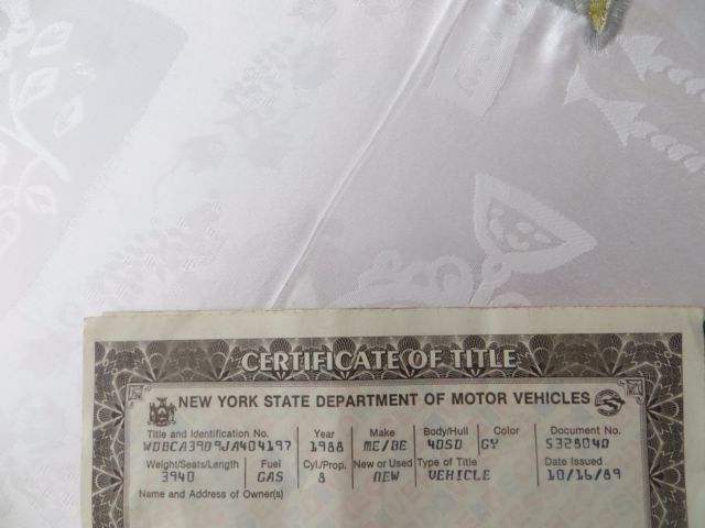 | 1988 ME/BEVIN NO; WDBCA3909JA404197.ONE OWNER.COLOR; GRAY.ALL ORIGINAL . |
