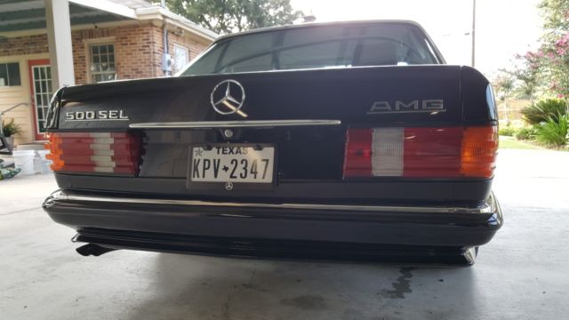 I bought this from the long time owner(he bought it in 1990, from a good friend who imported when new). The car had been sitting for awhile, so I did some things to get it in shape. I really didn't plan on selling it so soon, but I inherited a 1965 Corvette from a relative and since I can't have two classic cars I choose to sell the benz and keep the vette. This 1984 500sel AMG is a really cool looking car, the previous owner told me the car was imported with the body kit and suspension and the penta wheels, but he changed them to the aero1 several years ago. The car was painted several years ago, but still has a very good shine. There is a few scratches and a few small dings, nothing that PDR can't take care of, the wheels are also very nice with no damage or rash. The car overall shows very well! The euro vin#WDB1260371A025537, the odometer dosen't work so it shows 88955, the car runs, stops, steers good, but it's not perfect. I did the following things since I got it, New a/c compressor, master cylinder, idle control module, vac pump for locks, blower motor for ac, new pass seat switch, updated back of seats, and I changed ALL the fluids. The interior is very nice for a car this age, the dash is MINT! This is such a neat old car that I did alot of stuff to,and have alot of money invested in. I am also including an AMG brochure, extra set of mint euro headlights, some extra tires, basicly everything I gathered for the project. This is a 34 year old car, so have realistic expectations of it, of course it is sold as is where is! I am currently waiting on my title from the State of Texas, they told me 2-4 weeks, so keep that in mind.