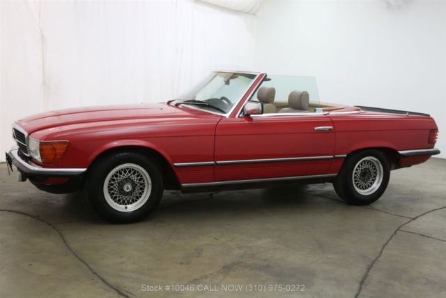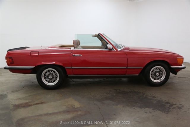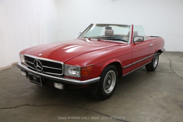 1983 Mercedes-Benz 500SL-EuroThis 1983 Mercedes-Benz 500SL-Euro featured here with 2 tops and 45,076 miles on the odometer is available in red with a tan interior. It is equipped with an automatic transmission, air conditioning, power windows, desirable small Euro bumpers, power steering, solid wheels and includes the spare tire. An excellent original car which is mechanically sound. For $15,750If you have any additional questions Please call 310-975-0272 or email with any questions! We also welcome all international buyers. We can help with shipping quotes and arrangements.