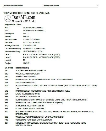 Description of 1987 Mercedes-Benz SL-Class |