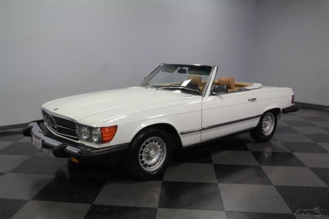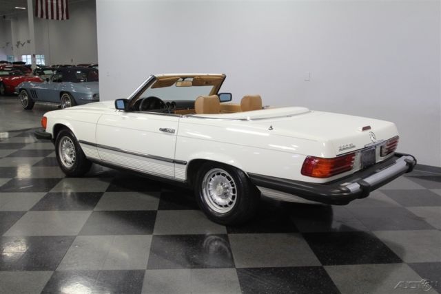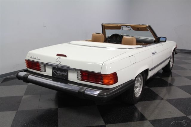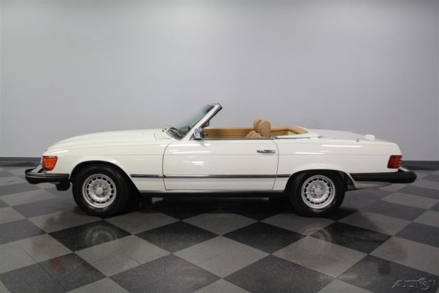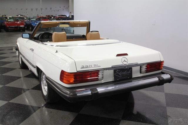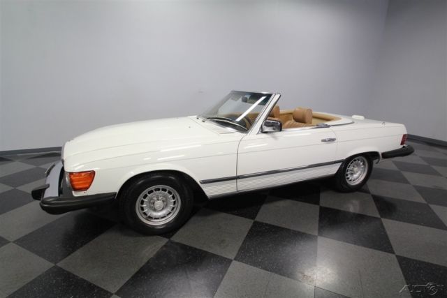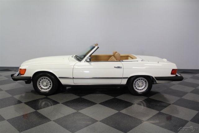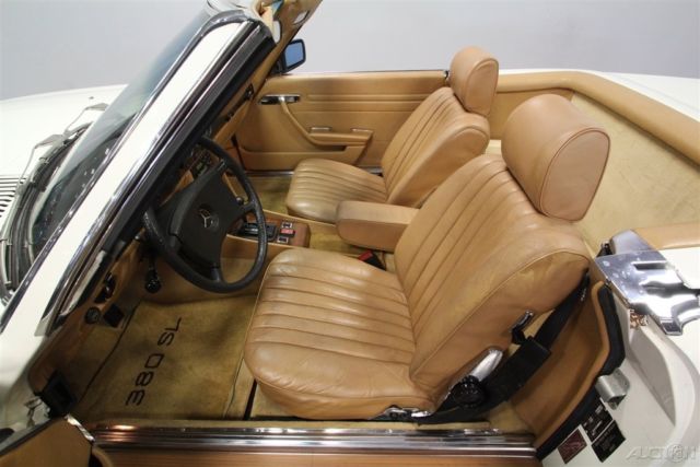 Good records, highly original, and plenty of the right investments - this 1983 Mercedes-Benz 380SL is the affordable drop top luxury classic that has everything you want. Mercedes built these R107 SLs correct from day one, so if you find a well-preserved example like this, age is barely a factor. Super straight sheet metal, complete trim, and German-engineered precision in the panel fit tell you that you're looking at a proper classic Mercedes. Plus, the factory white paint still has a nice gloss and shine - more proof of quality workmanship and a well-respected life. Even the details are nice with the brown pinstripe, upgraded third brake lights, and iconic factory alloys. Capping off this premium appearance is a nice coco brown folding roof, and there's also an exterior, color-matched hardtop whenever you want a coupe-like profile. While having two roof options makes this car ideal, we all know these SLs are best when topless. So you want a well-matched color like the premium tan leather. Plus, the wood on the console and dash looks terrific (even the exterior pinstripe is part of the coordinated package.) But what also makes this car so desirable is it retains all the features that makes it a true luxury machine. This includes conveniences such as power windows, cruise control, and the correct Becker AM/FM/cassette stereo. The air conditioning was even converted to R134a to make sure you can comfortably cruise with the top down for years to come. The 3.8-liter SOHC fuel-injected V8 is the original motor. Plus, there are over $10k in maintenance receipts for servicing within the last five years. So not only does the engine bay appear like a well-maintained classic, we have the paperwork that tells you it runs as good as it looks. That gives you the confidence to enjoy this classic European machine to its fullest. The fully independent suspension knows how to offer the perfect balance between a supple ride and back roads fun. The same goes for the four-speed automatic that has precision shifts and highway-friendly overdrive. Add in features like power steering and four-wheel disc brakes, and this is a true grand touring machine. Besides the aforementioned service record file, the sale also comes with the owner's manual and title documentation. This proves that you're looking at a cut-above classic for quite a nice price. Call now!