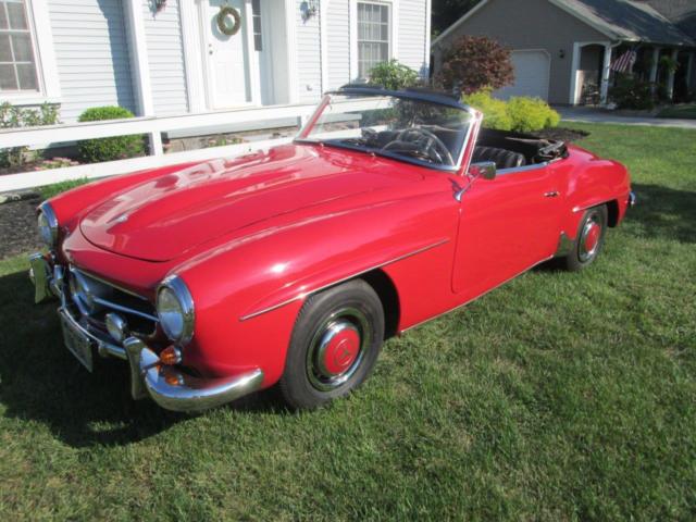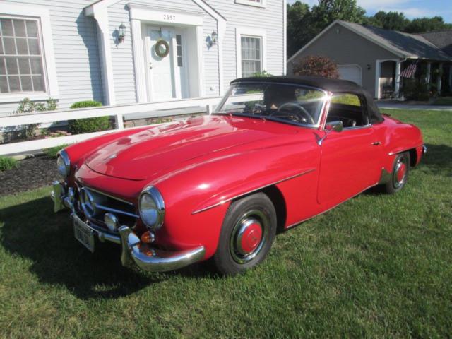 Page Title I bought the 1961 190sl in 1986. It had 89,000 miles on it, but, after I replaced the speedometer, the speedometer shows 59,958 miles. I drove the car for 10 years after a complete paint job, and new leather interior. This car has been in a dry garage since I purchased it in 1986. All chrome has been done at Mars Custom Plating in Mars, PA. In 2015, this 190sl has undergone a complete engine overhaul, or rebuild. Which includes all new rings, bearings, valves, guides, seals, and gaskets. Complete carb rebuild, new clutch and pressure plate, ring gear and flywheel, all breaks including cylinders, shoes, and lines have been renewed. All new wood in soft top with new German canvas. Also, new German carpet. There are blemishes in the paint as you might expect in a 30 year paint job, however very bright and shiny. Undercarriage is solid and clean. I have tried to give an accurate description of his car and it is in no way concourse rated vehicle. Good driver and a lot of fun. Priced for a quick sale. No reasonable offer will be refused. Questions feel free to ask. Don.