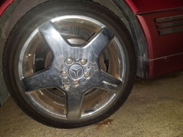 Needs work. Runs, drives, but needs Power steering filter, front shocks, minor body work on edge of wheel wells, front tires, and some paint touch up. Needs front driver seat leather replacement (or cover) to fix a tear from age. Car is a hardtop convertible. Hard top comes off. AMG Chrome wheels, in good shape, but needs chrome touch up. Overall a very good car. I was in a minor fender bender (someone backed into me at 5mph in a parking lot. Had adjustment through professional shop, with insurance. They would not repair wheel well edges, as it was prior damage from a blown tire. Car has been idle, but driven off and on since. Needs front shocks and minor maintenance to be 100%. Selling, as I do not have money to put into repairs, and I cannot do them myself. Paid 10k for it a few years ago, drove it from IL. Drove it until the fender bender in 2018 +/-, and parked since due to needing shocks that I cannot afford. I take it out occasionally to keep it maintained, but can't afford to fix it. Still a good car for someone wanting to restore it. Body is in good shape, and with some TLC would be a fun show car. See pics for detail. In person viewing by appointment, Dallas (Richardson) Texas. Sold as is, where is. Buyer is responsible for pickup.