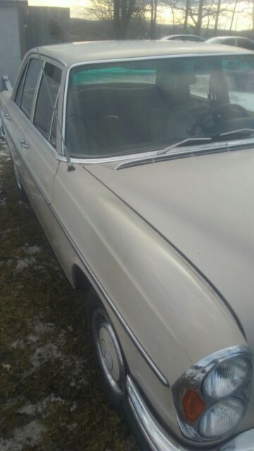 1970 280 SE. I believe this is a Euro model as it in Kilometers (this is long before they were introduced in Canada). The body is amazingly good with excellent chrome and all trim complete. The paint is all original with no touch ups although it has a bit of surface rust at the door bottoms.The interior is quite good with the original radio and trim. The door cards are excellent as is the original carpet. The seats have deteriorated with age as they are cloth. The engine will not start although it turns over freely.It even has the OEM exhaust in good shape.I think there is inadequate compression, so It will need attention or replacement. All in all this would be an easy project to have on the road. The brakes work but should be gone over. I would consider trading for a good series 3 Jaguar XJ6. I can arrange to deliver to Maine USA for a reasonable price, and will happily work with your shipper. We are close to the port of Halifax for European buyers, Thanks for looking. Feel free to call for more information 902-542-0977