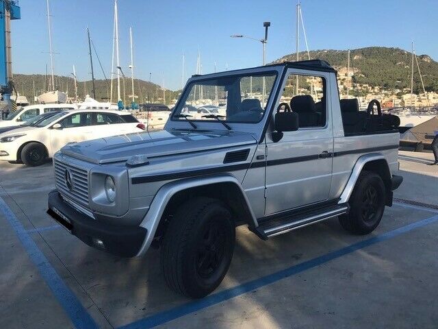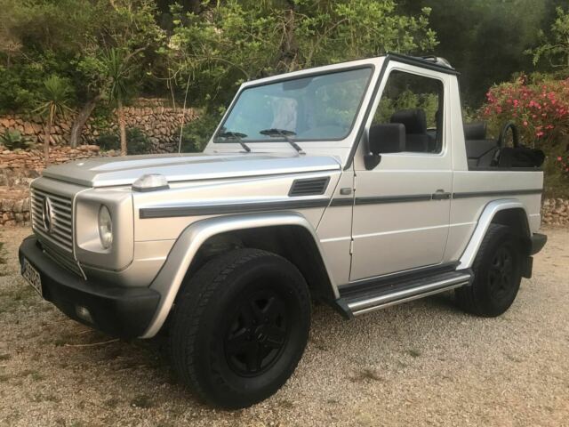 Reserve is around 40.000 usd. Collectable vintage Mercedes G Class Wagon convertible 3.0 Liter Diesel in silver with black Sonnenland fabric top from 1992. 200.000 km. Sporting black leather seats, all wood inside original and perfect. Original Mercedes Sidesteps, Original Mercedes rims, Electric windows, Alarm, Original Mercedes Wheel cover, new original Mercedes Battery. All in perfect vintage condition. 3.0 Liter 6 cylinder engine has been taken out and all checked and repaired. New tubes, Diesel pump restored, new Manual transmission set installed, new starter engine, new plastic windows soft top, Bluetooth radio, 6 speakers and bass woofer. A lot of parts have been replaced to make this car an excellent daily driver. Im a collector of these Vintage G Wagons myself and drive a G wagon Convertible daily from 1990 every day about a 100 km(70 miles).Car is located in Mallorca, Spain with a French title and can be shipped anywhere worldwide. I can assist with shipping and make sure that the car gets delivered at the Palma de Mallorca port for transportation. Buyer has to arrange shipping and importing the car in his or her country.The soft top is a dream and can be manually used in 5 different modes: Closed, Sahara, Targa with closed sides, Targa with open sides and all all the way open. See photo's. **This vehicle was imported from Europe and doesn't have a standard VIN, the actual VIN is WDB46330717084037.**