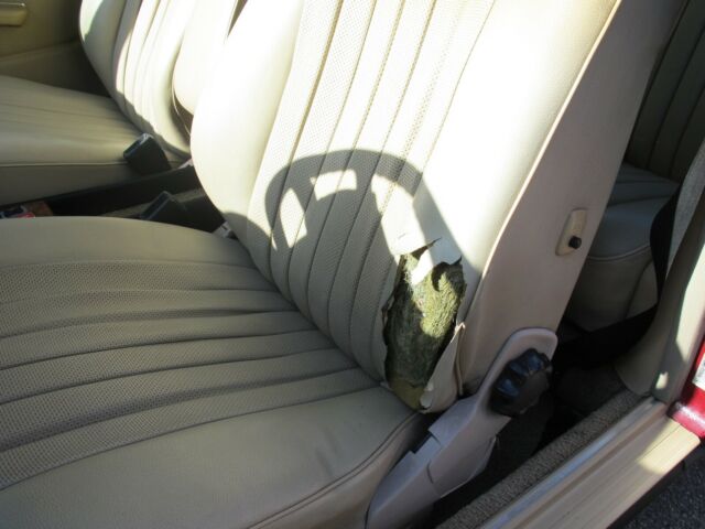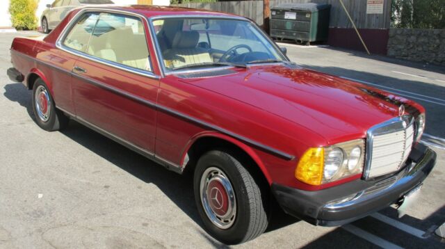 | 1979 Mercedes 300CD. Very clean with some wear that is typical for this model. Hole in the lower back of drivers seat and the dashboard has cracks from the sun. Sunroof works but air conditioning does not. Beautiful deep red color and the lighter color MB-Tex interior. |