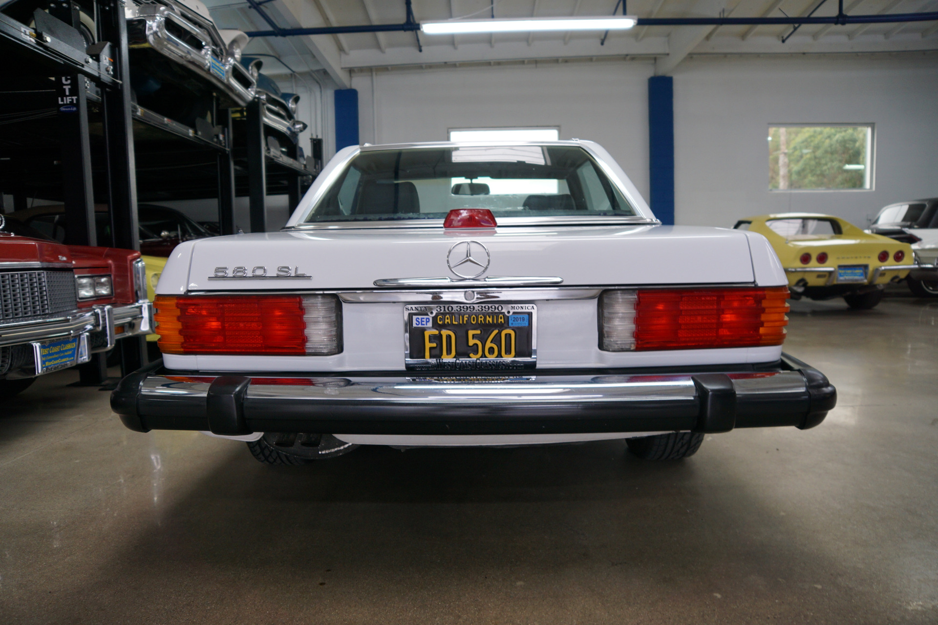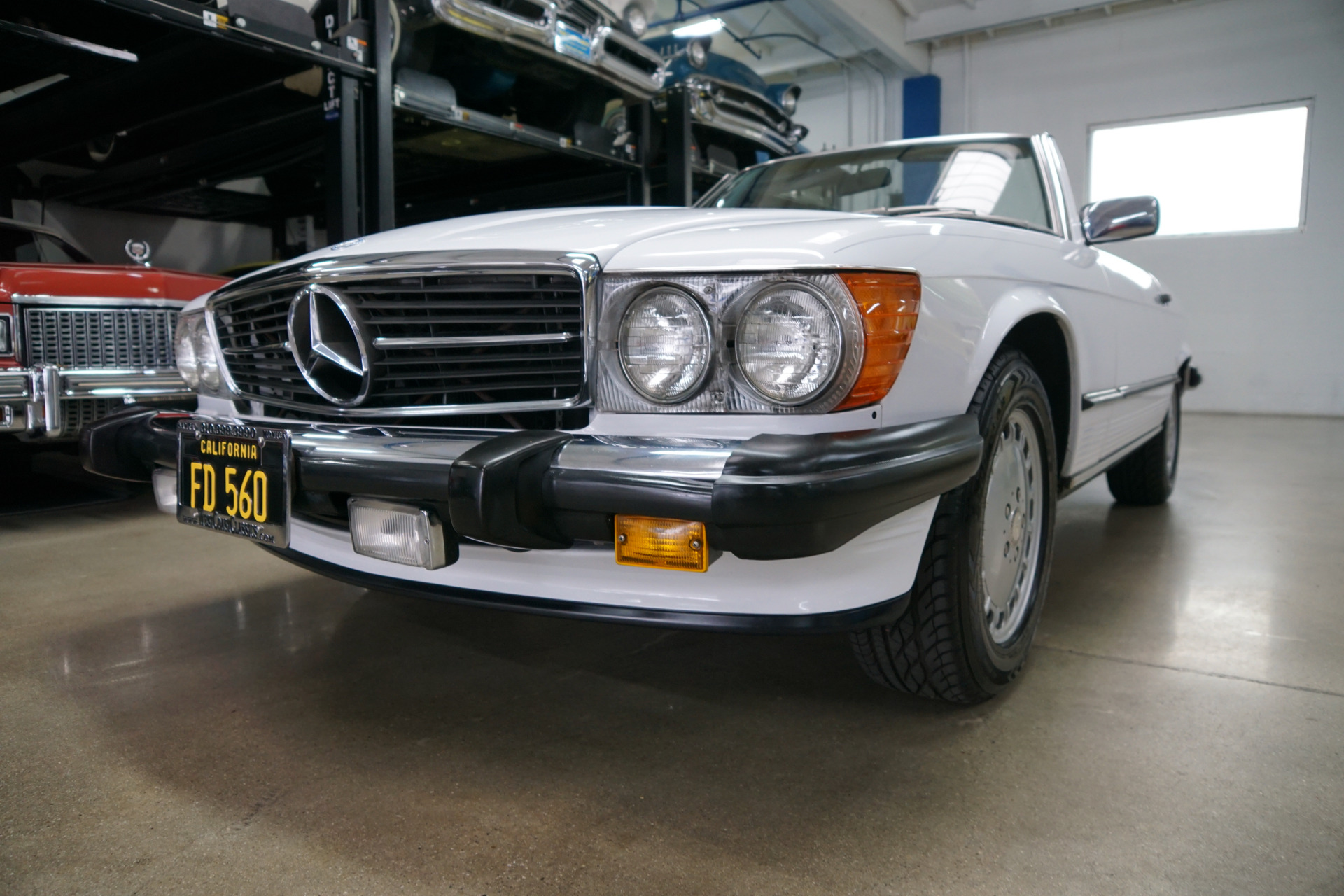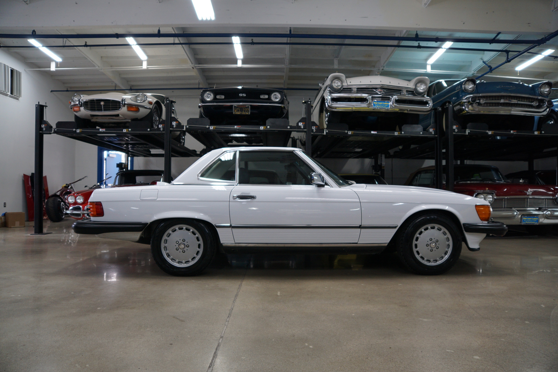 West Coast Classics are proud to present an absolutely exceptional and beautiful example of this original California 1986 Mercedes-Benz 560SL roadster in its original factory 'Arctic White' (Code 147) color paint with a gorgeous 'Dark Blue' leather interior (Trim code 272), it's original German canvas factory matching Dark Blue soft top, factory alloy wheels, matching factory hard top and 71K original miles! The car's factory options include: 5.6 liter OHC V8 engine, automatic transmission with torque converter, supplemental restraint system,... anti-theft alarm system with radio theft deterrent, power assisted steering, cruise control, tinted glass, electric window lifts, electrically heated rear window on hard top, fully independent suspension, power assisted four wheel disc brakes, anti-lock braking system, light alloy wheels, limited slip differential, leather upholstery, adjustable bucket seats and head restraints, front center folding arm rest, leather covered steering wheel and gear selector, automatic antenna, Aerodynamic Halogen Head & Fog lamps, first aid kit and air conditioning with automatic climate control, original 'Becker Grand Prix' radio/cassette and central locking.Obviously always garaged with a clean CARFAX report with the original factory 'Arctic White' color paint in virtually flawless condition and with an also beautiful condition 'Dark Blue' leather interior. The car has it's original 'German canvas' factory Dark Blue soft top which is still in as new condition.The car drives exactly like such a well maintained and serviced Mercedes with only 71K original miles should and must be seen and driven to be truly appreciated! Without a doubt, this must be one of the very finest example's available anywhere of this classically beautiful roadster design, probably the last classically beautiful convertible series Mercedes will ever build and now becoming more desirable and collectible than ever before - certainly you will look long and hard to find a finer head-turning example with available anywhere else.