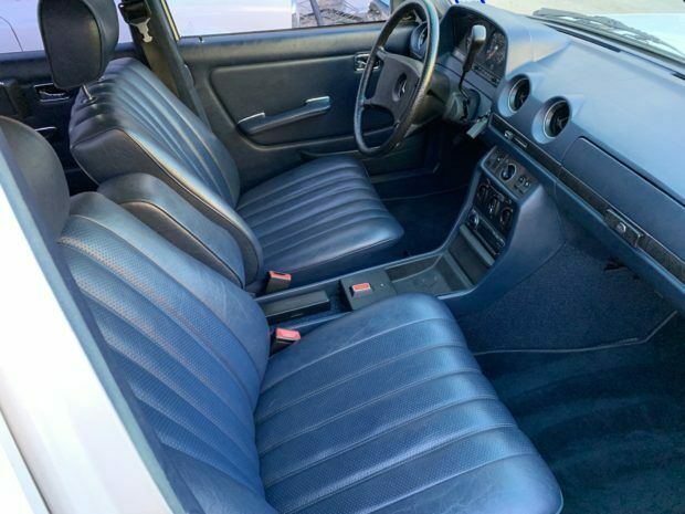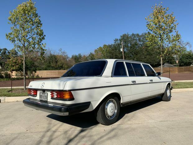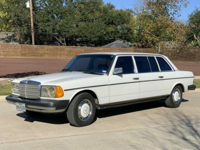 This 1980 Mercedes-Benz 250 is one of 5,120 factory long-wheelbase examples built and was reportedly imported new from Germany to Texas by a collector of Mercedes limousines. The car was purchased from the first owner's estate in 1992 by the seller, a Mercedes restoration specialist in Houston, Texas. Power is from the original 2.5-liter inline-six paired with a 4-speed automatic transmission, and recent service included an oil change and the installation of a new rear muffler. Finished in Classic White over navy blue MB Tex, this V123 is offered with a selection of spare parts, an owner's manual, and a clear Texas title in the seller's name. The limousine is finished in its factory Classic White (737), and according to the seller the right quarter panel was repainted about 15 years ago to address scratches. A scratch on the driver's side rear wheel arch is noted as well as rust at the bottom of the inner doors, with close-ups provided in the photo gallery below. An area at the back of the trunk has been treated and repainted to address rust that had started to show on the surface. 15" steel wheels wear color-matched covers and are mounted with Michelin X One tires. The long models featured a wheelbase 24.8" longer than the standard W123 sedan and came standard with a hydraulic self-leveling rear suspension. European-style headlights are retained, though US-regulation bumpers have been fitted. The interior is trimmed in navy blue MB Tex (132) with matching loop carpet, and a new factory dash was fitted around 15 years ago. Factory options include a column-shifter, air conditioning, and central locking, and a newer Alpine radio has been installed. The VDO speedometer reads in miles per hour, and the 6-digit odometer reflects approximately 76k miles, around 66k of which have been added by the seller. The additional space allows for seating to accommodate up to eight passengers, with a split fold-down middle row seat. The 2.5-liter M123 inline-six breathes through a Weber downdraft carburetor that was installed in place of the original Solex unit. Maintenance during the last 26 years has been completed by the seller, and a service on October 15, 2018 included installing a new muffler, changing the oil and filter, checking and topping off fluids, cleaning the engine, and lubricating the throttle linkage. Engine number stamping 12392012053089 is shown above and matches the number listed in the data card information. A copy of the data card information is shown above and includes the engine number, color codes, and option codes. The first six digits of the chassis number, 123028, identify the car as a long wheelbase 250. Options include: