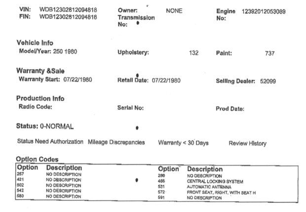1980 Mercedes-Benz 250 Factory LWB