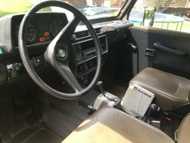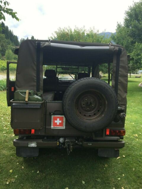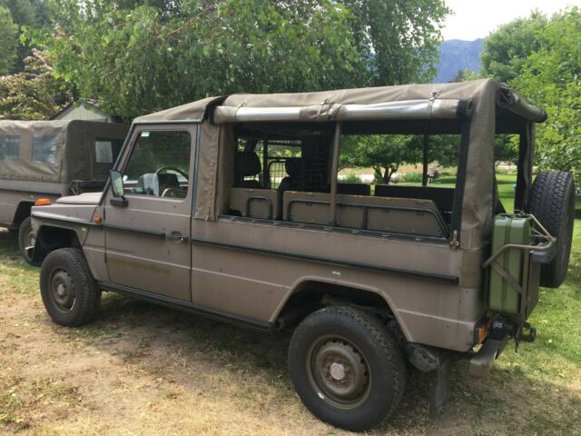 This is a one of a kind original Swiss Military GE 230 Personal Carrier. Legally imported this Spring .This Mercedes Benz was build in Austria under the Steyr-Daimler-Puch brand and is known as the Mercedes Gelandewagen..Vin: VAG46121717910606Power comes from a stock M102E23 inline 4 Cyl. 2.3 liter engine, mated to a factory 4 speed automatic 4X4 transmission with a 2 speed transfer case.Car was legally imported to Washington/USA this Spring and is being licensed in WA.Engine and transmission are serviced and car is ready to go. Can be driven on HWY in rear wheel drive and easy makes 65 miles per hour or more . Fwy consumption is about 20 miles/gallon, and thanks to a 25 gallon fuel tank, you can go the distance.This Wagon can easy pull a trailer up to 4400 lb and has a trailer hitch, which can be converted to US specs for $ 20.This GE comes with 2 keys, factory GE 230 Book, original Nato Jerry Can with nozzle, Swiss washing utility bag, tool bag, fuse and bulb container, 5 new tires, newer canvas cover and Wa title.This GE will go where no regular SUV can go! This Wagon is born to go thru snow and mud with ease, thanks to over 12 inches of ground clearance with front and rear skid plates.