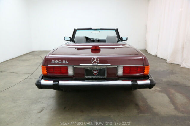 1986 Mercedes-Benz 560SL This 1986 Mercedes-Benz 560SL featured here with 2 tops and with 11,423 miles on the odometer is available in its original color code#587H cabernet red metallic with a grey interior. It comes equipped with an automatic transmission, cruise control, air conditioning, driver side airbag, power windows, power steering, solid wheels and includes the jack, spare tire, owner's metal ID plate, owner's manual, service and warranty policy, maintenance booklet, original window sticker, original dealer invoice and predelivery inspection form. This is an excellent original California car that was with the same owner for many years. The Mercedes is also mechanically sound. For $39,950