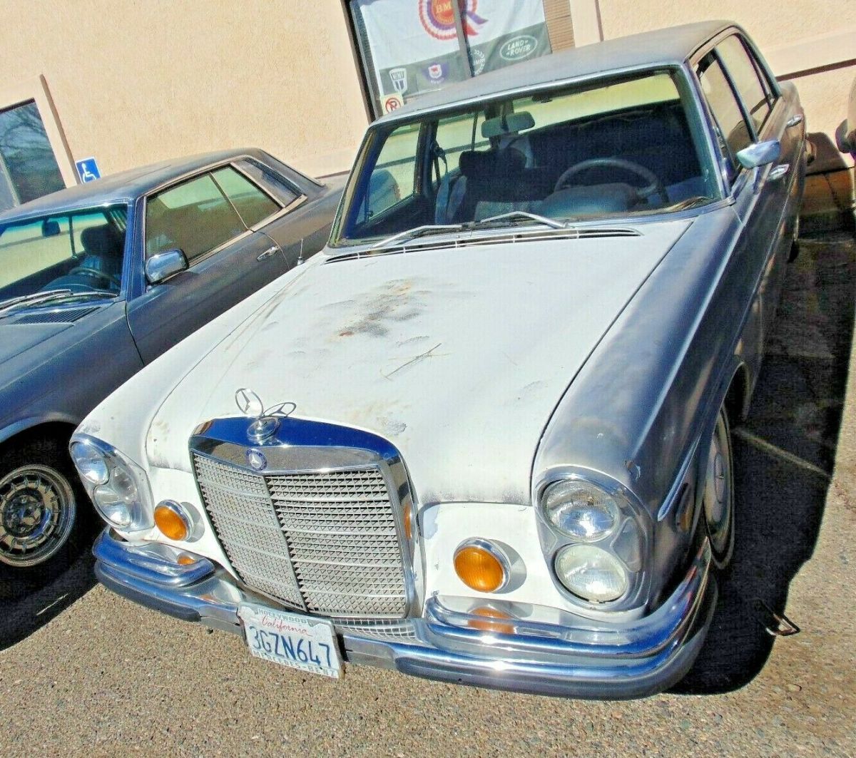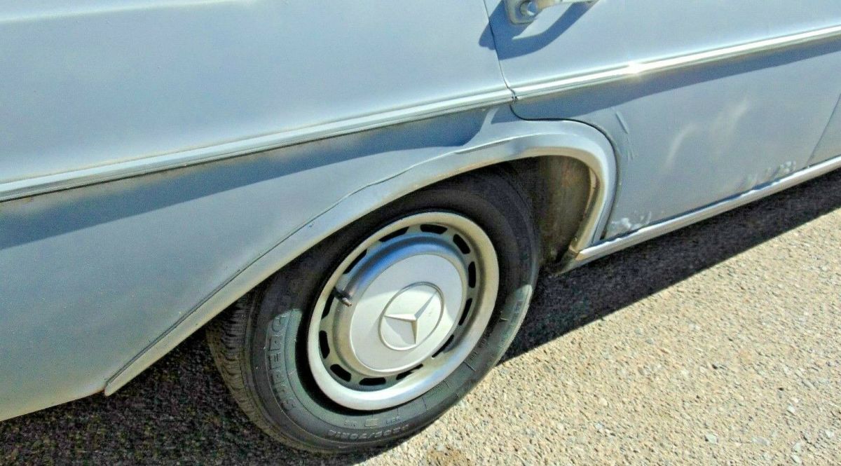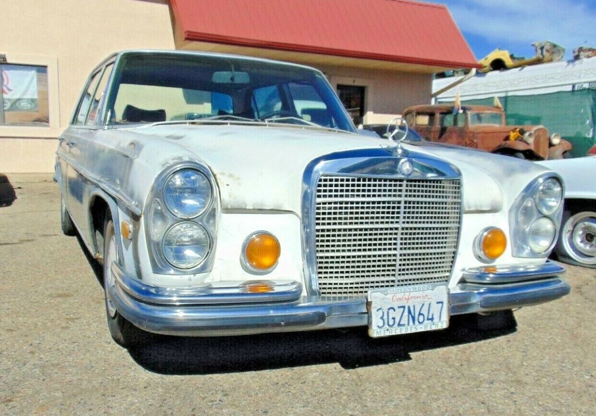 This is a 1970 Mercedes Benz 300 SEL 6.3 I picked up in Los Angeles recently. A long time sitting off the road 300SEL I had visions of getting it up and running and keeping it. But I will never get to it. Before I part this out for like 5 times more than selling it complete, I will see if it sells complete. The car has rust, The previous owner primed a lot of the body . He said to seal the body from any any more rust. He sprayed a lot of the chrome,glass,moldings, lights,emblems, etc. I got most of the glass and some of the chrome cleaned off a bit. But this car needs a full paintjob. Original white car with grey primer . Original dark blue interior in not bad shape. The door panels are very nice.Some of interior wood, not so much.The dash has cracks.As does the windshield. The outer chrome is actually pretty niceThough the rust is not. There is rust bubbling here and there. The rear trunk is not bad with nice inner corners. Rockers are not bad. As are the floors. Some small rust at the front jackpoints and other areas, This car has rust, but not terminal and should be able to be repaired. The lower rear doors have rust thru on the bottom interior.So this is tough one. It has rust. It has some dents.It needs a full paintjob and bodywork. On the plus side the drivetrain is in nice shape. The bumpers and grille are in nice shape. All 4 hubcaps are in nice shape also.The previous owner told me he had it at a repair shop. Where they did work to the air suspension system to make sure it was in working shape.But something or other happened and the owner drove the car 10 miles back to his place not too long ago. And said both engine and transmission are in great shape. He also said the shop kept a air tank. After getting it over here to Arizona, we jumped the dead battery,sprayed starting fluid into the intake and it fired right up with that. But have not run it off the tank as I have no idea what is in there and do not want to run it until that is checked. This is a lot of car for the money.. These 6.3 are getting harder and harder to find in any shape., especially what this one is priced at. Clean straight title.I travel around mostly the West Coast and might be able to get it to you or close for reasonable money. I can arrange shipping to Long Beach California shippers for export for $300 no problem .I get over to CFR Rinkens, Shumacher, etc quite often.No bidders with less than 10 feedback unless you contact me first. No games. No bid then have to ask the wife. Basically,no BS.500 deposit within 24 hours of auction end. Balance within 7 days