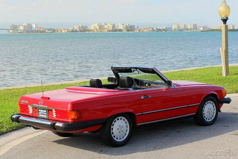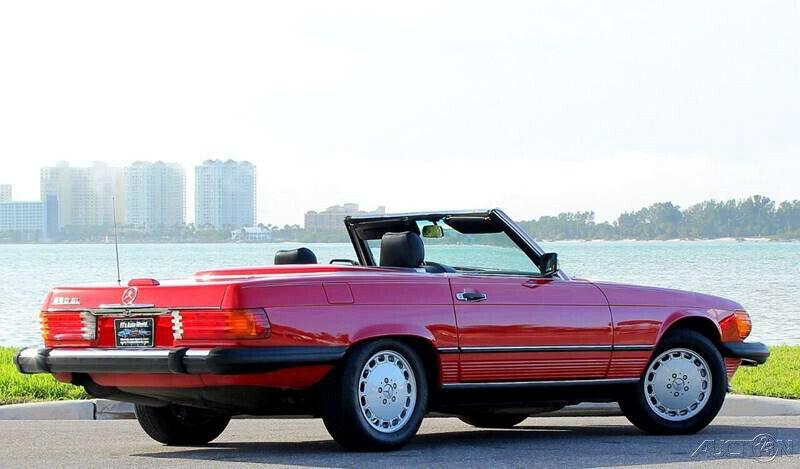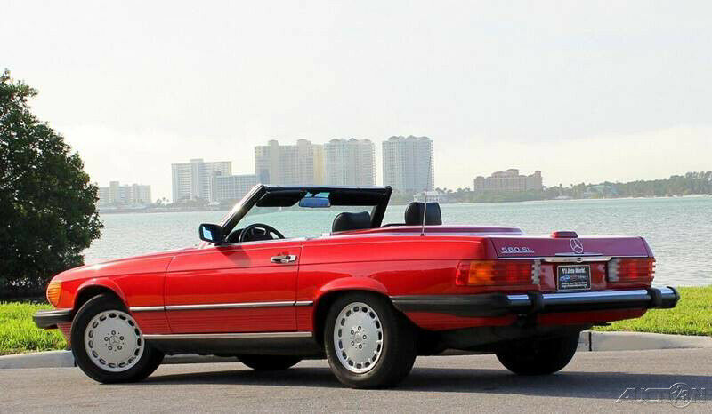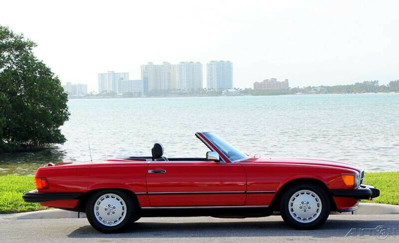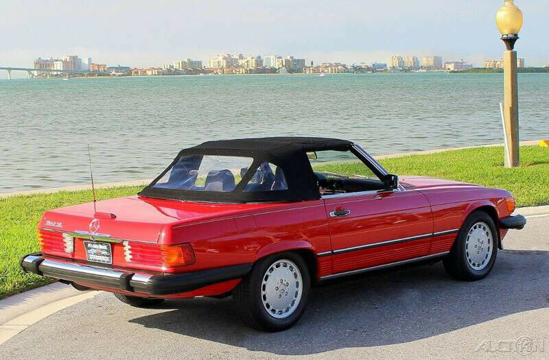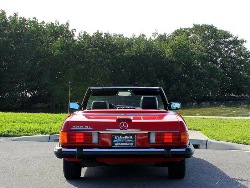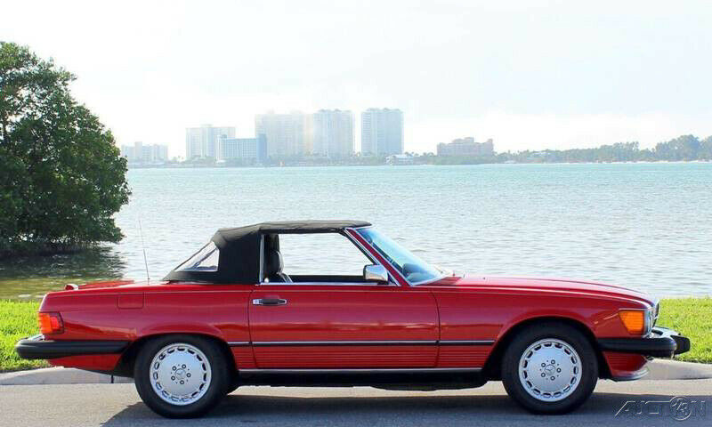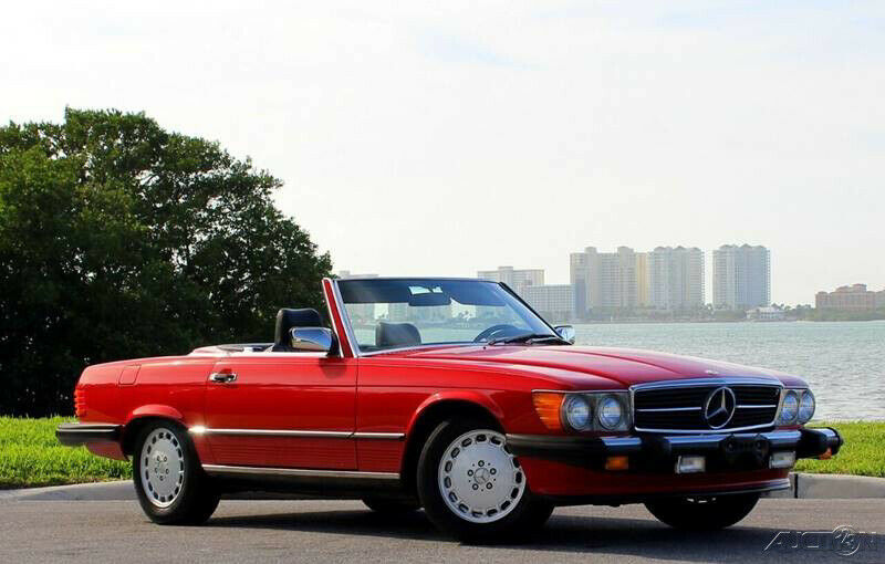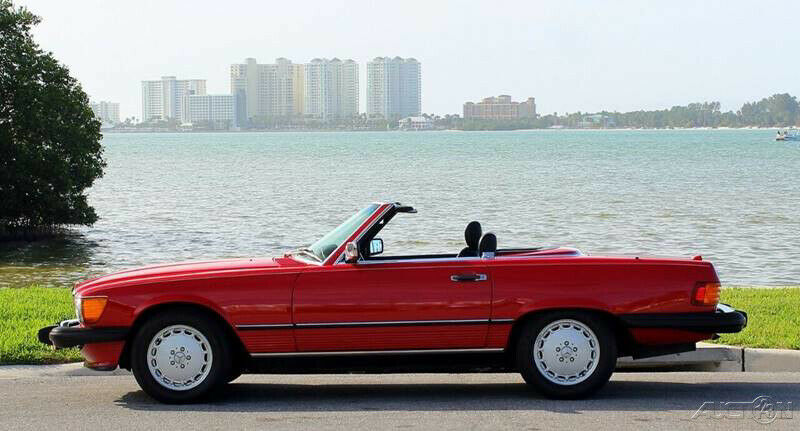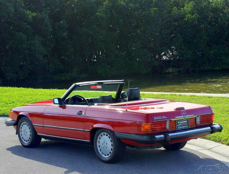 1989 Mercedes 560SL Convertible Roadster ( Clean Autocheck history report with only 85,763 miles). 5.6L V8 engine, automatic transmission, factory A/C, power steering, 4 wheel disc brakes, signal red exterior, accenting pin stripe, color matched hard top, black canvas soft top, black leather interior, center console, floor shifter, wood grain dash trim, upgraded Pioneer AM/FM/CD radio, German square loop floor mats. Well cared for and a pleasure to drive. The 1989 560SL is the final and best year for this body style and this one stands out in a crowd!!! Financing available, trades considered!!!