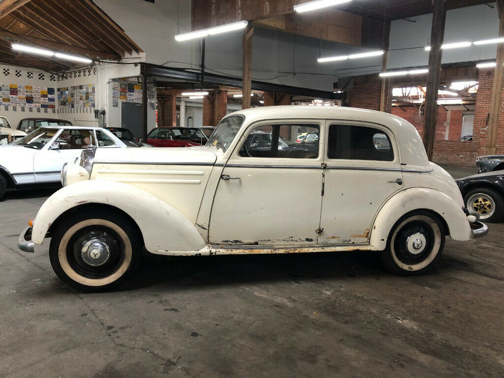 | 1953 Mercedes-Benz 170SD SedanThis 1953 Mercedes-Benz 170SD Sedan project is available in white with a creme interior. It comes equipped with a manual transmission, single carburetor, wood trim, and solid wheels with whitewall tires. This is an excellent original California car which has just come out of storage. For $10,750 |