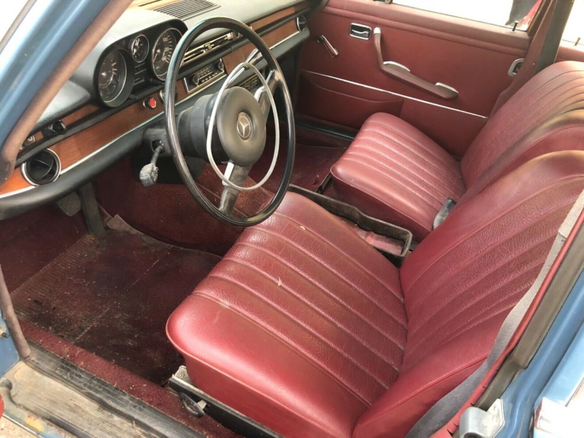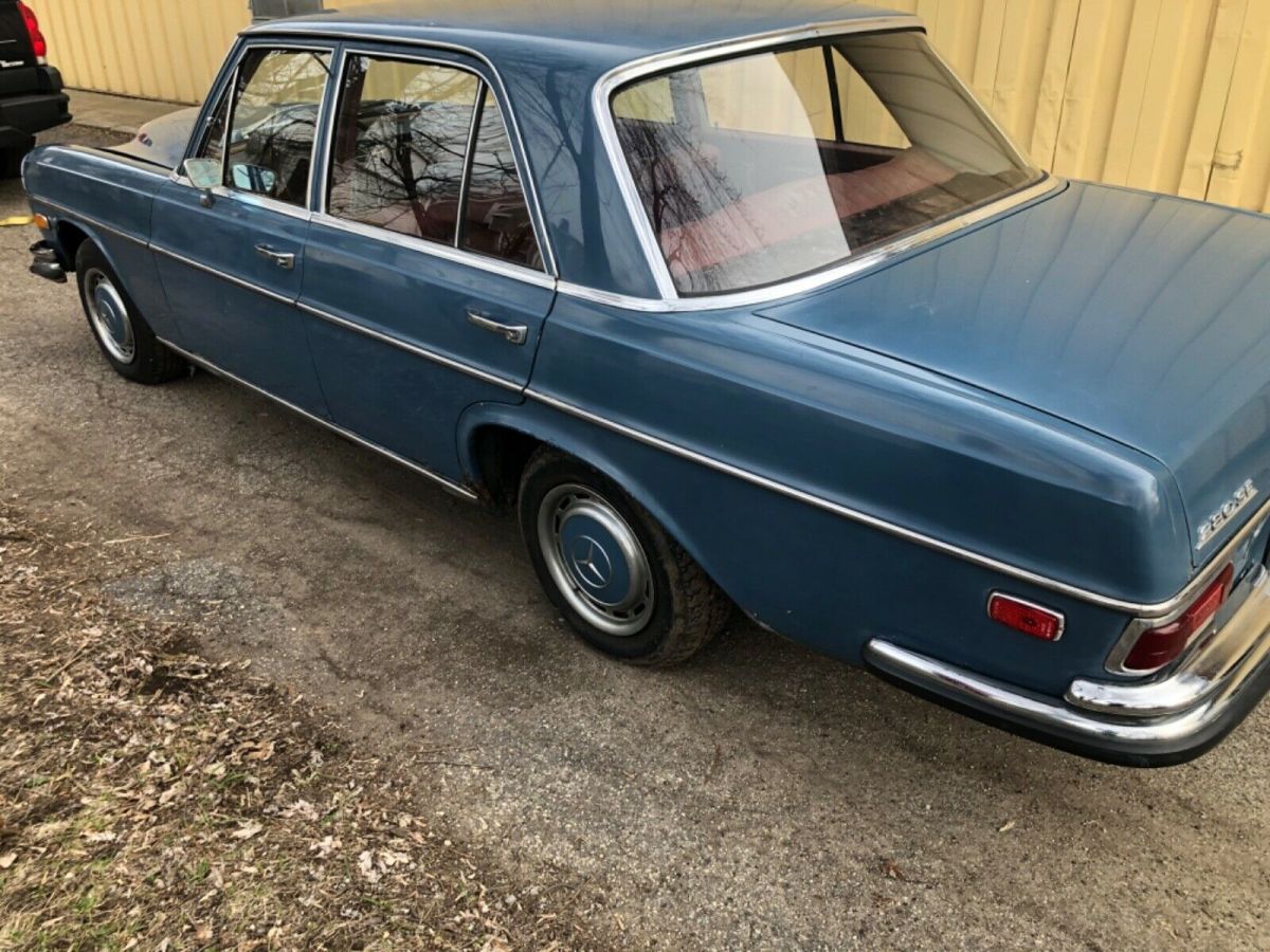 | 1968 280 SE Mercedes-Benz four-door blue sedan with 104,000 miles. Automatic with red interior. This car has been in STORAGE FOR 20 YEARS. Outside has been washed and waxed. Missing battery and radiator which leaked. Left rear tire is flat. Broken window on right rear. No keys and no title, BILL OF SALE ONLY. Some rust spots-see photos of front headlights.This is a three day sale and the vehicle is also being sold locally. Please send me your phone number if you would like me to contact you for any questions you may have. |