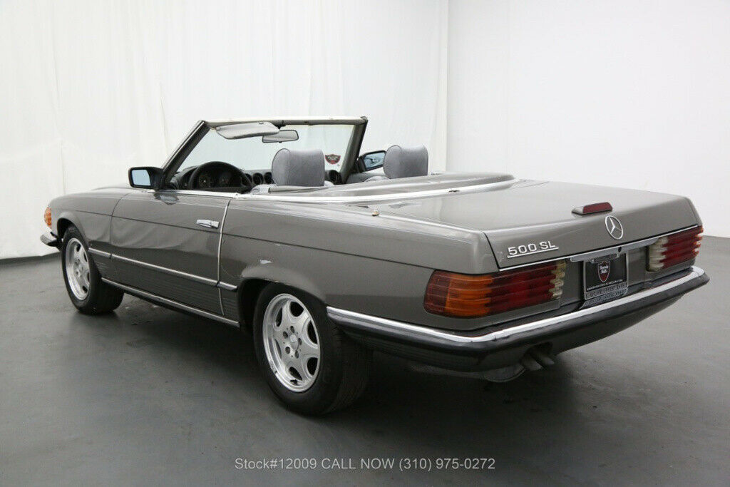 | 1982 Mercedes-Benz 500SL The 1982 Mercedes-Benz 500SL featured here with 2 tops is available in its original color code#172G of medium gray metallic with a grey interior. It is equipped with an automatic transmission, air conditioning, cruise control, power windows, power steering, Euro bumpers, 4-wheel disc brakes, and 6 spoke wheels. It also includes receipts from 2003 to 2020 totaling over $7,000. This 500SL could use some light cosmetics and is also mechanically sound. For $14,750 |