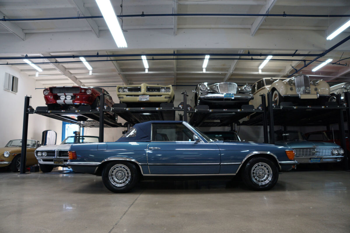 West Coast Classics are proud to present an absolutely exceptional example of this very rare and ultra low production 1972 Mercedes-Benz 450SL roadster with only 88K original miles; a US import with the attractive European small chrome bumpers before the US National Highway Traffic Safety Administration enforced bumper regulations incorporating stronger energy absorbing bumpers without regard to aesthetics for safety reasons. Introduced in 1972, this particular example is an early US specification car and is thus equipped with the significantly more attractive small chrome bumpers that were fitted to all European cars. Sold new in Germany on 9/13/1972 to it's original and long time southern California fastidious owner who imported the car to California the same year and where it was subsequently serviced at 'Beverly Hills Mercedes-Benz' of Beverly Hills, CA. The car will be sold with all original handbooks, service warranty manual, maintenance booklet etc and was reportedly always primarily serviced at Mercedes specialists and dealers since new with every indication showing that this car was always well maintained and serviced on schedule. The car was reportedly owned by the same family owner until earlier this year and kept in a climate controlled facility until we recently acquired the car. The car's original factory options included: BEHR Air Conditioning Central Locking Right Outside Mirror Becker Europa AM/FM Radio (Replaced with Blaupunkt) Electric Front Windows Tinted Glass Dark Blue Soft Top Floor Mats Padded Leather Dashboard Padded Steering Wheel Three Speed Automatic Transmission The factory original 'Metallic Blue' (color code 387) color paint is in extraordinarily fine condition and still reflects like glass. The original 'Dark Blue' color interior is also in gorgeous shape with virtually no signs of any wear. The car has it's original factory matching German canvas 'Dark Blue' soft top and it's factory 'Metallic Blue' hardtop which is also in pristine condition. The car drives exactly like such a well maintained and serviced Mercedes should and must be seen and driven to be truly appreciated. The engine is extremely strong with no noticeable oil leaks, the transmission shifts smoothly through the gears and the temperature always remains cool. In 1972 Mercedes-Benz first offered the new R107 series SL model in the US. It would go on to be the longest production run of the SL series until 1990. The 350SL first entered production in Europe in 1970 with a 3.5L engine and first was imported to the US in 1972 as the 3.5L 350SL in very low numbers until late 1972 when the 4.5L 450SL was introduced. Whilst the previous W113 6 cylinder 'Pagoda' SL models were certainly beloved and collected, this new R107 marked a significant advancement in both styling and sophistication, being at once longer and more imposing, bigger, more luxurious and with the new low compression V8 engine matched to a robust steel frame, making it at once more planted to the road with a heavier rock steady stance with superb power and acceleration to match for sustained high speed driving with a top speed of over 120mph. Without doubt, this is one of the finest classically beautiful roadster designs built by Mercedes-Benz, probably the last classically beautiful convertible series they built and now becoming more desirable and collectible than ever before - certainly you will look long and hard to find a finer head-turning extraordinarily rare and low production early model 1972 450SL example with low original miles with the attractive small European chrome bumpers anywhere else! |