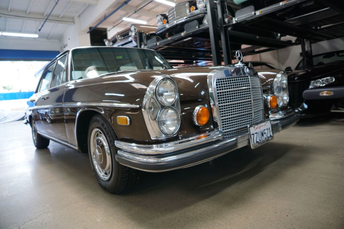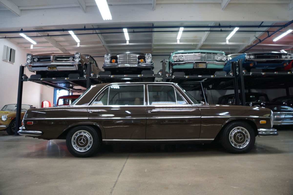 West Coast Classics are proud to present an exceptional example of this original southern California 1973 year model (8/72 built) Mercedes-Benz 280SE (W108.067 Series) 4.5L V8 Sedan (built between the dates 4/71-11/72 with this particular car being one of the last models built in 8/1972) and obviously always coveted with no signs of any accidents and owned by only one very careful and mature owner until the year 2020 when it was sold to only it's second ever southern California owner from whom we acquired the car. The car was ordered and still retains it's original 'Tobacco Brown' (Color Code 423) factory color paint which is matched to it's original 'Palomino' MB-Tex interior and boasts a center console with floor shifter and factory air conditioning. The car is an original US import version to southern California and mostly still in all original condition with the highly desirable 4.5L/230HP V8 cylinder engine and this is a car loaded with factory options including power steering, power brakes, power windows, air conditioning, central locking, matching factory color Mercedes hub cap wheels centers, stunning and all original 'Dark Brown 'MB-Tex' (which is a high quality Mercedes produced vinyl seating, which is technically a leatherette and very close to leather, but notorious for being much easier to maintain and extremely durable) interior with matching carpet and kick panel carpet and heat absorbing glass and central locking! Please note that the car's original radio has been replaced with an after market CD player. The car reportedly had only one southern California owner until the year 2020 and it has no cracks in the original dashboard or wood veneer, exceptional condition chrome, including both front and rear bumpers and all the typical rust-prone areas are rust-free and there are no signs of any accidents or damage whatsoever! This car is a true stock survivor and must be seen to be seen and driven to be fully appreciated - the engine is extremely strong and responsive with excellent oil pressure and no oil leaks and which sounds absolutely magnificent and the recently rebuilt transmission shifts smoothly through the gears and the engine temperature always remains cool. All the options are working as they should including all the power options and the ice cold air conditioning. Please note that the car was always primarily serviced in recent years and only recently fully serviced at the renown 'Malibu Motors', independent Mercedes specialists of Santa Monica, CA and has a clean bill of health for turn key and piece of mind driving today! This is one exceptionally fine example of a mostly completely original 1973 Mercedes 280SE 4.5L V8 Sedan in rare turn-key ready daily appreciating, daily driving and daily head-turning condition! Perfect for the Mercedes collector or enthusiast or any classic car enthusiast looking for an affordable and reliable daily driving classic European car! |