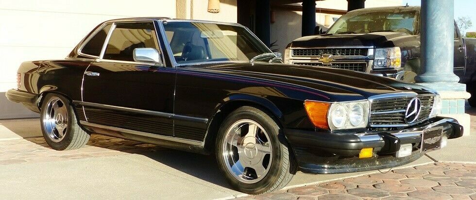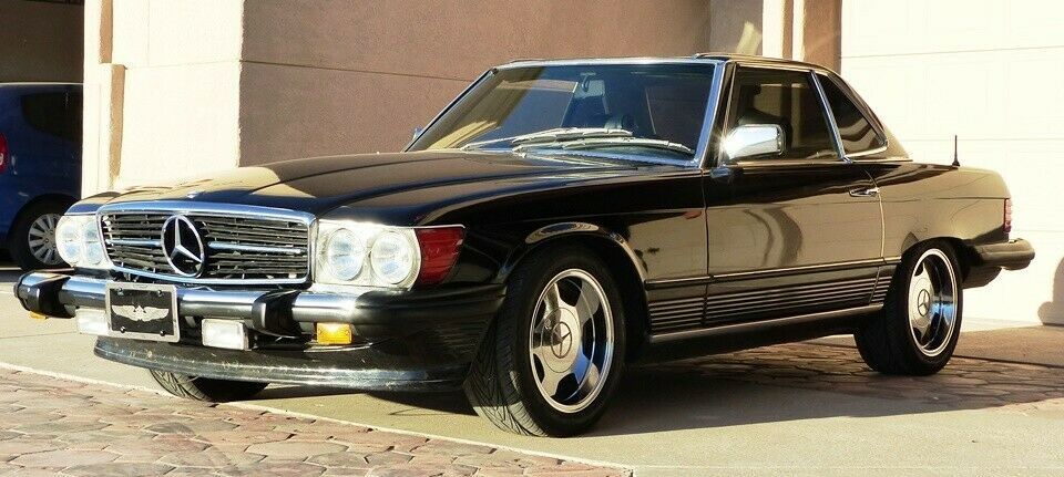 | 1985 Mercedes-Benz 380 SL, Black exterior, black leather interior. Runs well. Hard top can be removed for open air driving. Salvage title but nor problems since I bought it in 2015. |