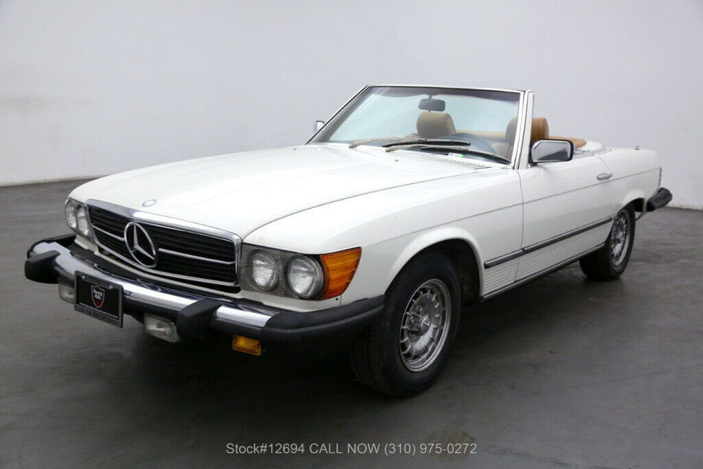 | 1983 Mercedes-Benz 380SLThe 1983 Mercedes-Benz 380SL featured here with 2 tops is available in its factory color code #737 Classic White with a sand beige interior. It comes with a clean Carfax and is equipped with an automatic transmission, cruise control, air conditioning, power windows, power steering, 4-wheel disc brakes, and solid wheels. A well-priced original California car which is mechanically sound. For $10,750 |