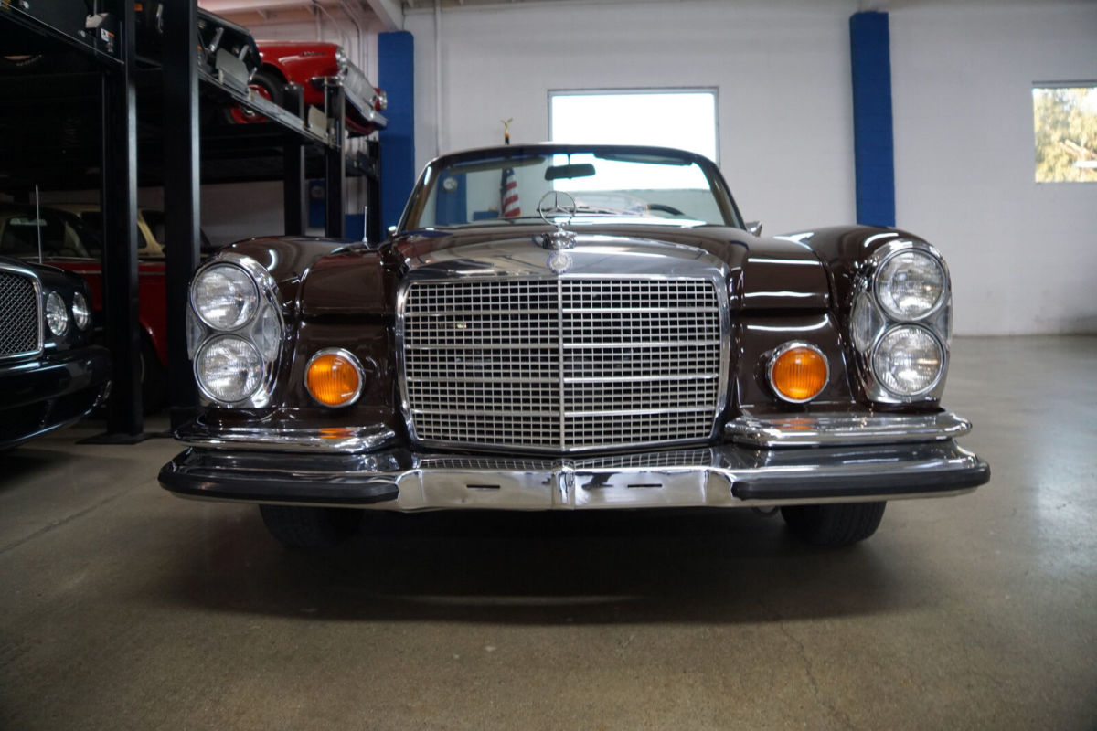 West Coast Classics are proud to present a beautiful example of this 1971 Mercedes-Benz 280SE 3.5 Cabriolet with reported to have 83K original miles and to be a long time California car recently acquired from a southern California collector/owner and loaded with factory options including very rare and desirable factory BEHR air conditioning, single seats, power steering, power windows, power disc brakes, outside rear view mirror & factory 'Becker Europa' radio. The recipient of a beautiful original factory color repaint with no expense spared some 4 years ago in it's original 'Tobacco Brown' factory color paint and boasting a new factory correct matching 'Dark Brown' soft top and leather tonneau cover with a very striking 'Light Ivory' color ROSER leather interior and obviously always stored in climate controlled garages since new with a remarkably well preserved original undercarriage and trunk. It should come as no surprise that both the 3.5 Coupe & Cabriolet was in an exclusive territory of only those who could afford the very best, and who were indeed fortunate if they could even obtain one of these rare imports from their local Mercedes Benz dealer, such was the exclusivity and demand of these amazing motorcars. Hand built with generously applied chrome fittings, combined with the finest natural materials available, provide an unmatched ambiance of luxury and wealth in its lavishly appointed interior, with fine ROSER leather, exquisite 'Rosewood' burl wood; the standard of craftsmanship apparent everywhere on this car is nothing short of astonishing in these hand-built Mercedes luxury cars. This particular car still boasts it's mostly all original interior including original 'Becker Europa' radio and striking burlwood and also boasts original factory air conditioning and power windows! The 280 SE 3.5 coupes and cabriolets were Mercedes-Benz' first V-8 powered sports cars. The combination of superb performance and elegant styling makes the 3.5 one of the most collectible and desirable car's in the world amongst classic car collectors and this is obviously especially true for Mercedes-Benz enthusiasts. With the same basic body as the 280 SE six cylinder, the eight cylinder offered a new interior which featured more wood and leather upholstery as standard. This was a low production car for its day with only 4,502 units produced (3,270 coupes and 1,232 cabriolets) during its only two years of production (11/1969-7/1971). The car had been built in 1971, the final year of only a three year production run, and dispatched from the factory in Stuttgart in 1971. The original factory 'Tobacco Brown' factory color repaint is in exceptionally fine condition and includes the rare and highly desirable factory options including the original steering wheel, original reupholstered leather seats, original center console, original 'Becker Europa' radio, low grille, original tools, jack and owner's manuals and original factory BEHR air conditioning. The 280SE 3.5 W111 model. was built for a period of less than two years, from November 1969 to July 1971 with very few models being sold in the U.S and carrying a whopping MSRP of $14,509.00 for a coupe, obviously even more for a Cabriolet, some forty-five years ago! Squarely placed in Rolls Royce Corniche territory, those who could afford the best were fortunate if they could even obtain a 3.5 from their local Mercedes Benz dealer, such was the exclusivity and demand of this amazing motorcar. Generously applied chrome fittings, combined with the finest natural materials available, provide an unmatched ambiance of luxury and wealth in its lavishly appointed interior, where fine ROSER leather, exquisite burl wood and chrome plated fittings abound, the standard of craftsmanship apparent everywhere on this car is nothing short of astonishing. The cost of restoration of one of these hand-built Mercedes has become almost prohibitively expensive. In 1969, the 3.5-liter power plant introduced the engine of tomorrow for Mercedes. Highly advanced, Mercedes' first V-8 featured overhead camshafts, electronic fuel injection, and transistorized ignition. Output was rated at 200 DIN horsepower, good for a top speed of 127 mph and 0-60 times of 8.9 seconds! This car must be seen and driven to be fully appreciated - the engine is extremely strong and responsive and the transmission shifts smoothly through all the gears and the engine temperature always remains cool. In summary, this is one very fine example of the internationally known and highly collectible and legendary Mercedes-Benz 280SE 3.5 V8 Cabriolets. A long time California car and restored only as required over the years by obviously careful and conscientious owners . Understood to have come 83K original miles, 1 of only 1,232 ever built, you will look long and hard to find a finer example anywhere else. |