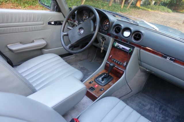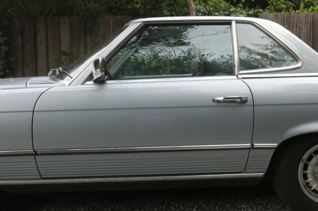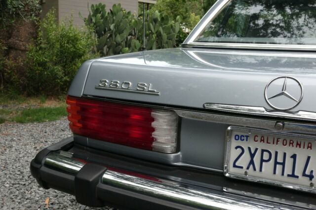 1984 Mercedes-Benz 380 SL - R107 V8 convertible. GORGEOUS! Perfectly maintained; stock, not a restoration. It is a time capsule. The car was babied all of its life. The drivetrain, suspension and body all are in fantastic condition. All maintenance and repairs have been performed as needed. Double timing chain. Years of service records available. This SL drives, rides and shifts like a Mercedes S-class should. The car has only lived in California and Florida. The soft top is perfect and is only 2 years old. It is OEM. Included is a hard top, also in great condition. A rolling stand is included for storing the hardtop. The car cold starts almost instantly. Engine is smooth and quiet. The tranny shifts very smoothly, The suspension is tight but smooth at the same time. All suspension parts are up to spec; many rubber bits, ball joints, bushings, drivetrain mounts have been replaced as needed over the years.The AC blows cold and the heat is, well, hot. The car is blue on blue on blue; The exterior color is a metallic silver blue. The interior is blueish light gray leather with matching trim and carpeting. The soft top is dark blue. The paint is beautiful, deep and glossy. It is smooth to the touch, not oxidized. A buff and polish will make it look brand new. There are no dents or dings but there are a few tiny chips- easily touched up. See photos. The chrome/brightwork is almost perfect. The interior wood trim are in excellent condition. The leather is mostly in great condition, but the driver's seat is dry and unhappy. Every electrical function works as it should (except the crappy Kenwood stereo). This SL gets compliments constantly. Full Disclosure (see photos): The known issues are minor and typical: The paint has a few tiny imperfections which can be easily buffed out or touched up. There is a crack in the dash and the sun visors are bloated due to sun (typical of most old convertibles). The soft top is almost new, so it can be difficult to fasten closed if it isn’t used regularly to keep it stretched tight. Disclaimer: This little car with a big V8 is very fast and has cost me a small fortune in speeding tickets. It hasn’t cost a fortune in gas; it gets the best gas mileage of any R107.It rides like a Benz, smooth as silk, so you don't realize how fast you really are going. The car handles like a honed sports car; tight, communicative, grips the road, but at the same time it often makes the road seem smoother than it really is. ______________________
