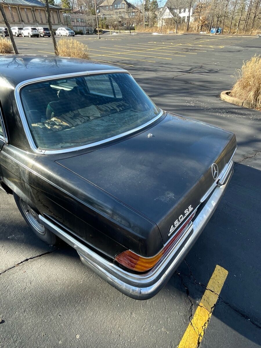 1973 450 SE Vehicle Details 1973 450SE. Black on black. 289,500 miles. Starts every time and runs good. I bought it locally 18 months ago on Facebook Marketplace just as a fun extra car. It’s very original and the only rust I have found on it is at the bottom of the rear window as shown in the pictures. The person I bought it from told me they had spent $3,000 into it including brakes, and the brakes do feel good. Here is everything I can think of that I know needs attention: - Power windows don’t work; - Hesitation on acceleration; - Paint is sun damaged; - Interior is sun damaged; - Ignition has been replaced with a push button that only works when the driver’s door is open (apparently it was wired to the dome light circuit); - Interior hood opener lever is broken and has a vice grip attached to open hood. A neat old car you can drive while fixing up the small things it needs. |