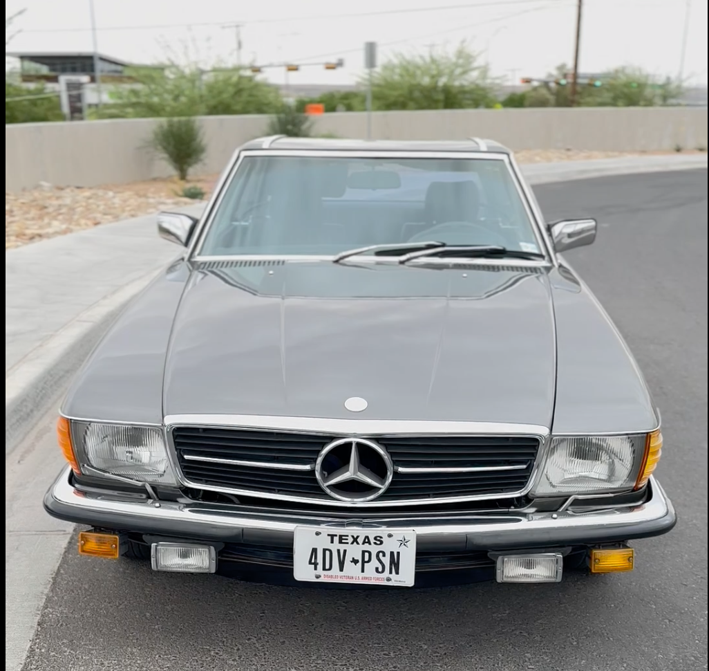 VIN10704612002637This 1983 Euro Mercedes-Benz 500 SL-Class is a stylish convertible model with pagoda style detachable factory hardtop with a sleek black original leather interior and a rare Mercedes Anthracite gray exterior. This classic car has a fuel injected 245HP V8 engine with rare factory headers, automatic transmission with 50000 original miles, AC/PS/EW/4wheel power disc brakes, Euro style short bumpers, original Euro headlights with wipers, Mercedes mag wheels on it and comes with a clean vehicle title. The SL-Class model offers a luxurious experience with its automatic transmission and superior craftsmanship typical of Mercedes-Benz vehicles. Pristine no rust body with new paint, excellent patina black leather interior and carpets, excellent mechanical condition with all systems updated as needed to insure comfortable reliable driving experience. Two owners from new, original sales invoice and most maintenance records, original Mercedes tool kit, owners manual, emergency euro flare kit, always dry weather driving. Sold as is where is no warranties. Cash sale only. Shipping at buyer expense. Overseas buyers accepted. Shipping to Europe: Port of Houston, TX; Shipping to Fair East: Port of Los Angeles, CA. No scammers, no trades. No rust local west Texas car never exposed to snow. Excellent driving mechanical condition will drive anywhere. Contact seller: E-mail: bog123@icloud.com Cell # 1(915) 497-1275